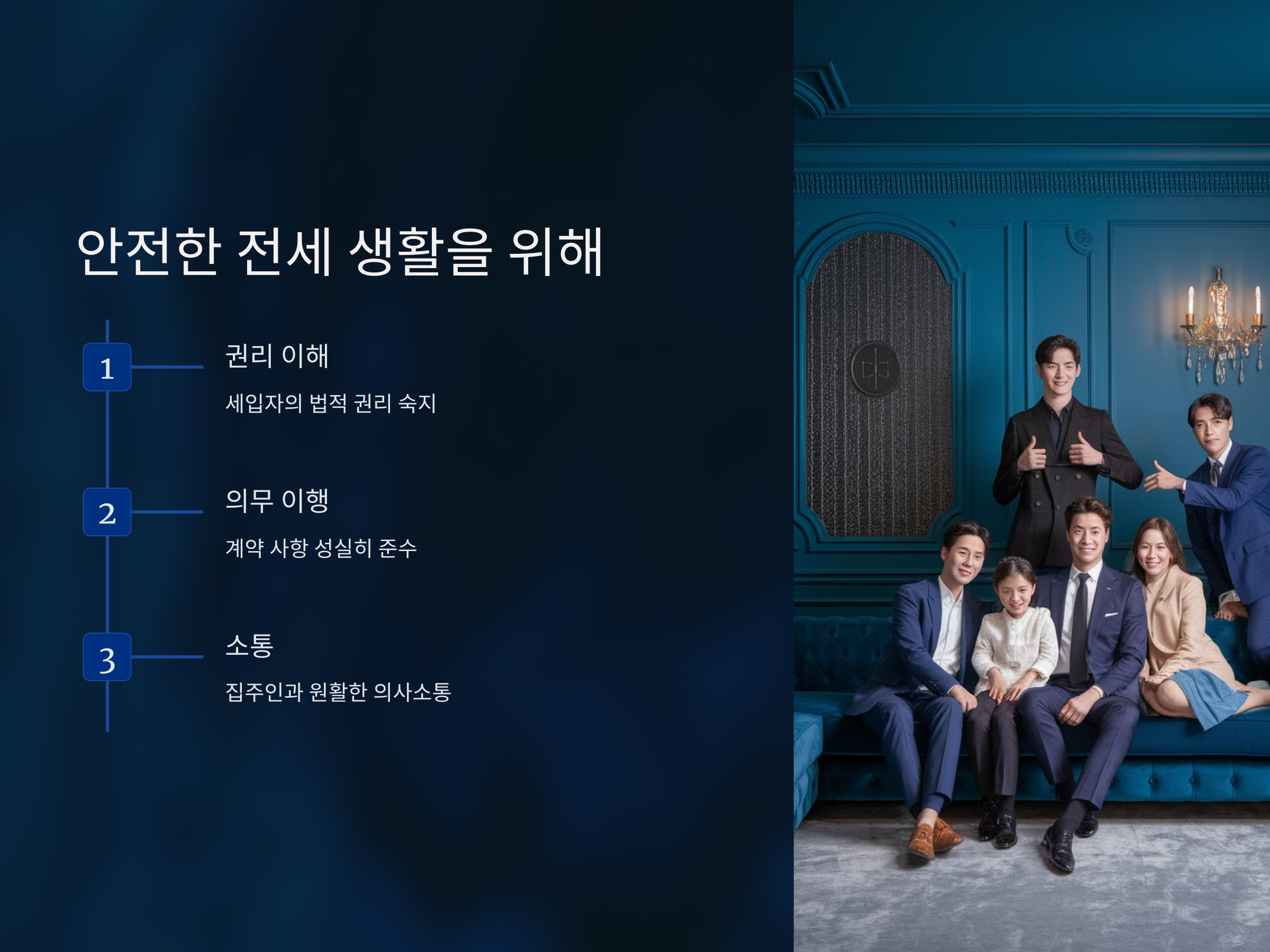 전세 세입자가 자신의 권리와 의무를 제대로 지키는 것은 매우 중요합니다. 이를 통해 불필요한 분쟁을 예방하고, 안전하고 편안한 전세 생활을 할 수 있습니다.