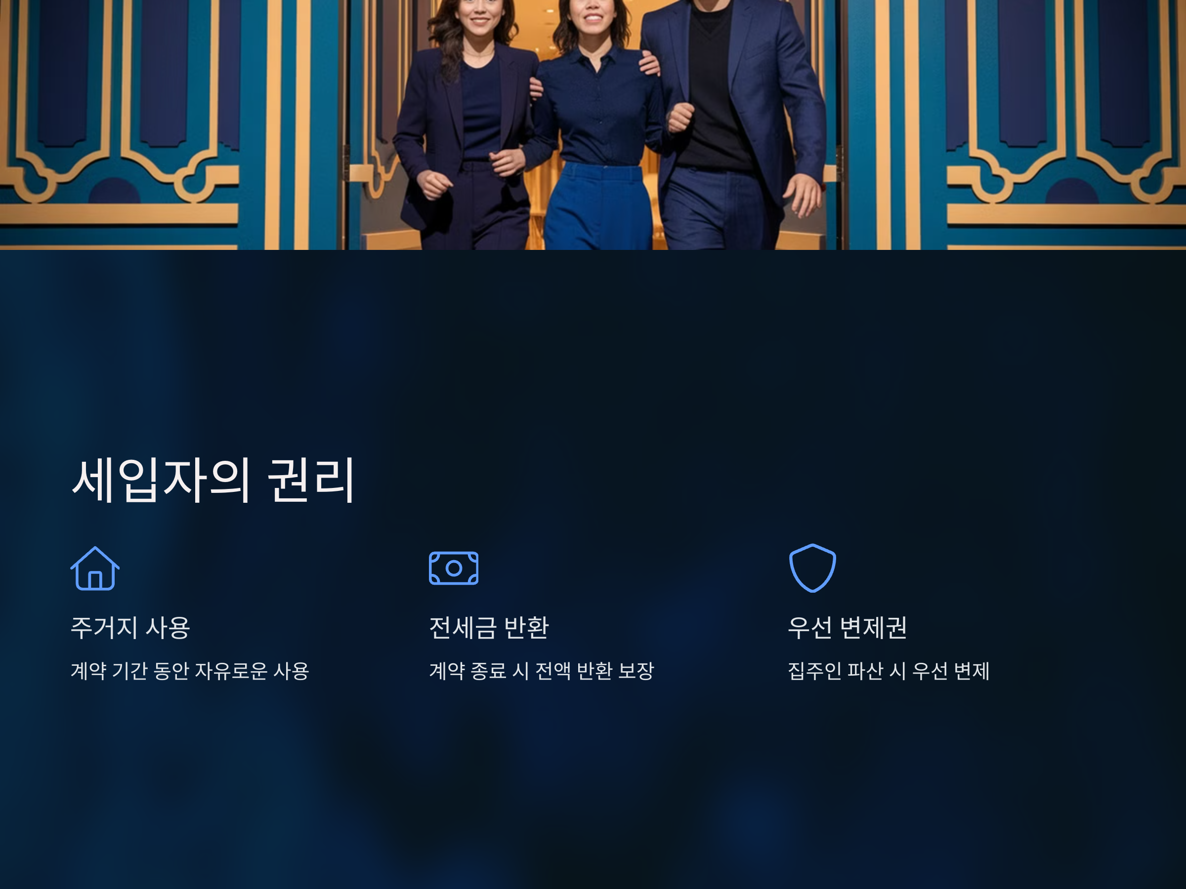 - 법적인 보호: 전세 세입자는 주택임대차보호법에 의해 법적으로 보호받으며, 계약 기간 내 세입자의 권리가 보장됩니다.