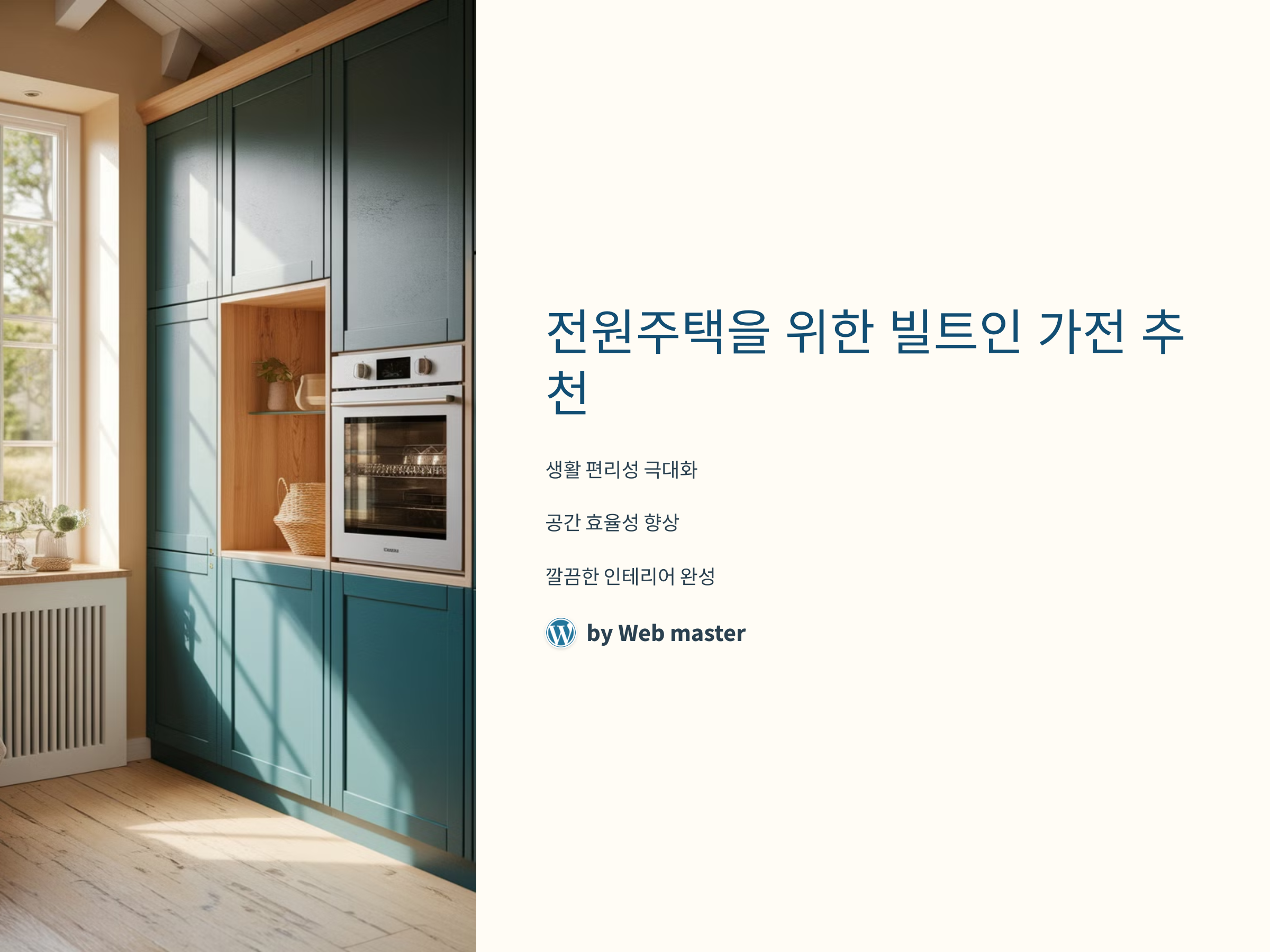 전원주택을 짓거나 이미 살고 있는 분들에게 중요한 요소 중 하나는 바로 생활의 편리함을 더해주는 가전제품입니다. 특히 빌트인 가전은 공간 효율성을 극대화하고, 깔끔한 인테리어를 완성할 수 있어 많은 사람들이 선호합니다. 하지만 전원주택의 경우, 도시와는 다른 특성이 있으므로 가전 제품을 선택할 때 신중함이 필요합니다. 오늘은 전원주택에 꼭 필요한 빌트인 가전 제품을 추천드리고, 각 제품이 왜 필요한지 그 이유도 함께 살펴보겠습니다.
