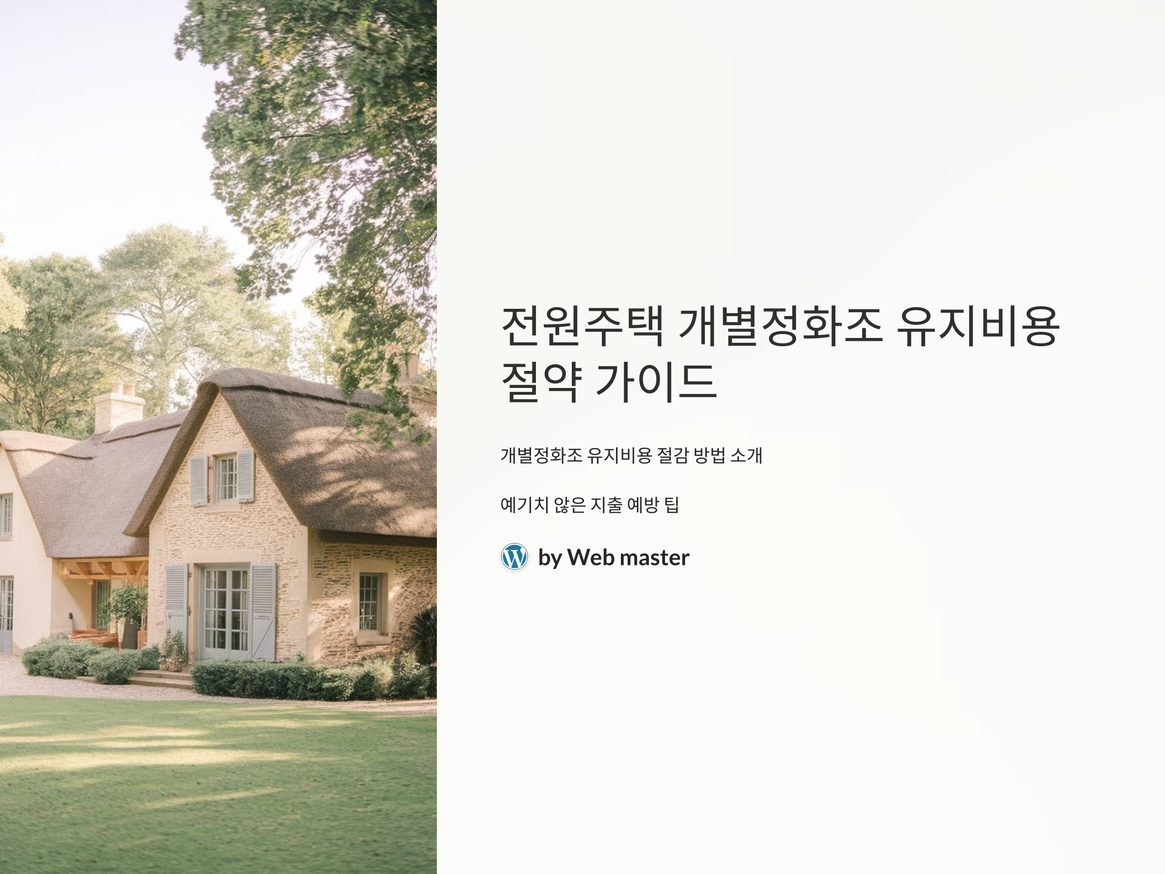 전원주택의 개별정화조 유지비용은 초기 비용뿐만 아니라, 정기적인 관리와 점검을 통해 절약할 수 있습니다. 청소 주기, 점검, 수리 비용을 고려하여 관리하는 방법을 잘 선택하면, 장기적으로 비용을 절감할 수 있습니다. 또한, 개별정화조 설치 시 적절한 용량과 품질을 선택하는 것이 유지비용 절약의 핵심입니다.