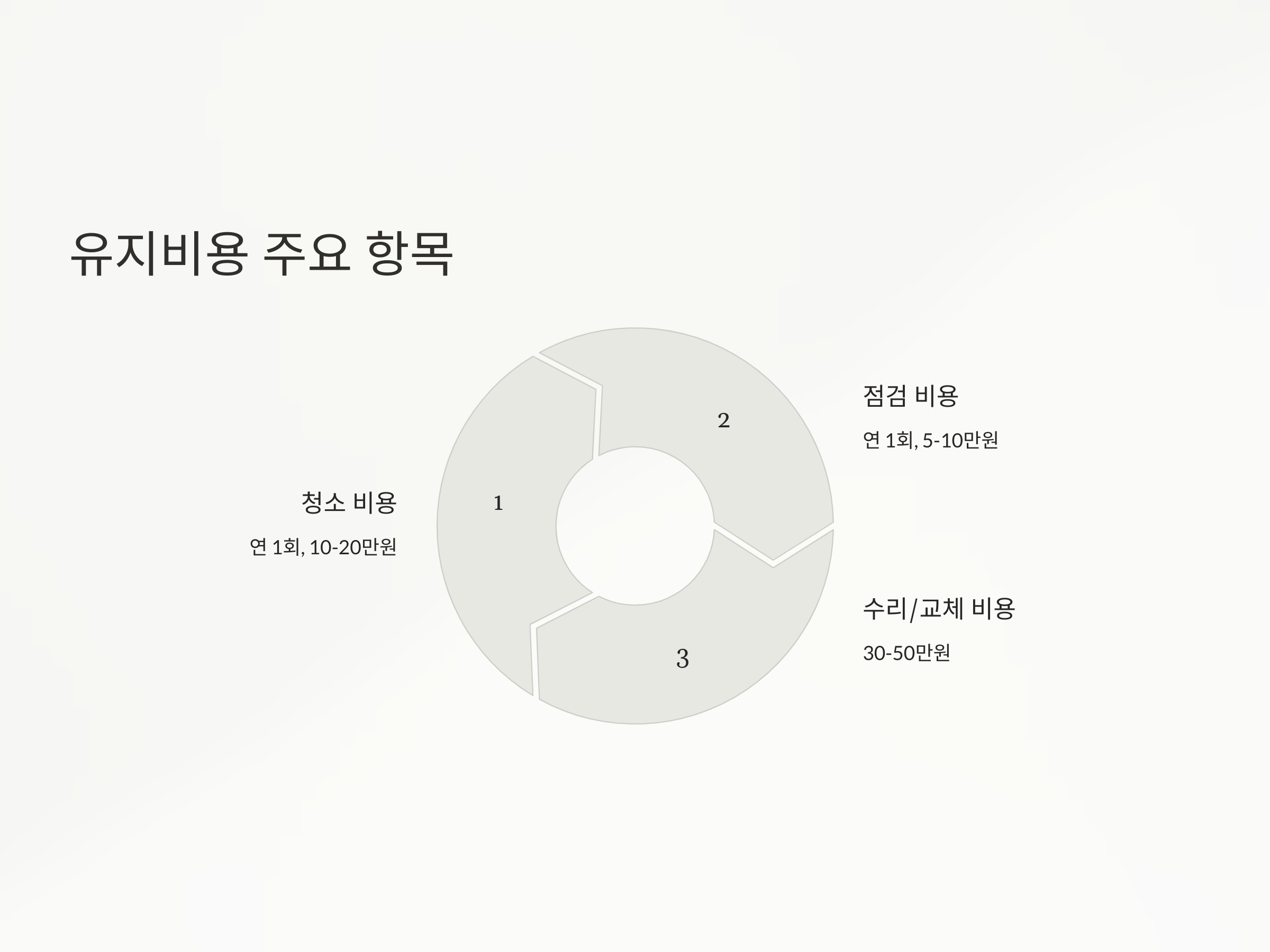 개별정화조의 유지비용은 크게 3가지 항목으로 나눌 수 있습니다: 정화조 청소 비용, 점검 비용, 수리 및 부품 교체 비용입니다.