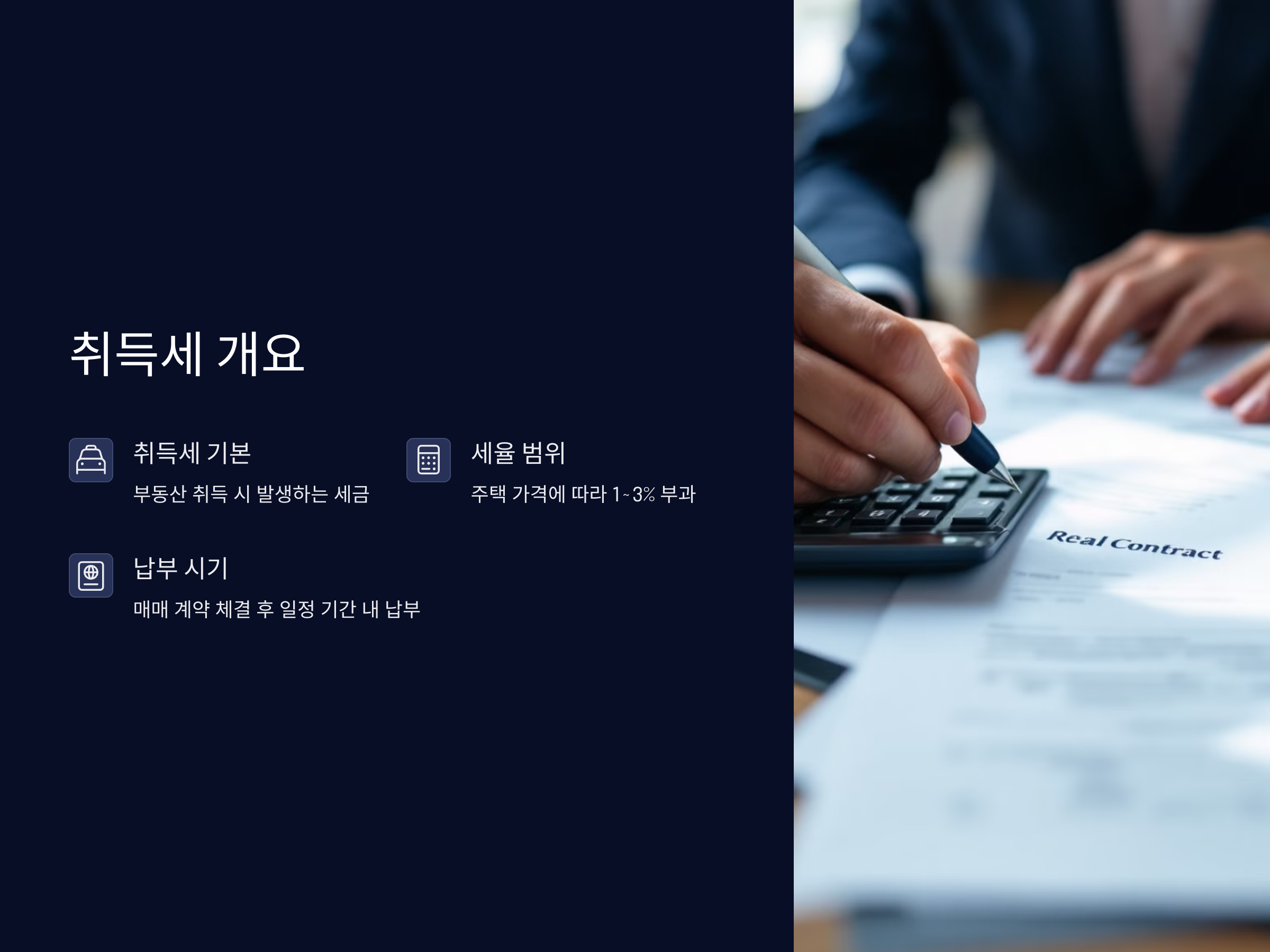 전원주택을 구입할 때 가장 중요한 세금 중 하나는 바로 취득세입니다. 취득세는 부동산을 취득할 때 발생하는 세금으로, 주택의 구매가격에 따라 세액이 달라집니다. 전원주택을 구입하면 취득세가 부과되며, 그 금액은 일반적으로 주택의 거래금액에 따라 결정됩니다. 취득세는 국가와 지방자치단체에 의해 부과되며, 매매 계약 체결 후 일정 기간 내에 납부해야 합니다.