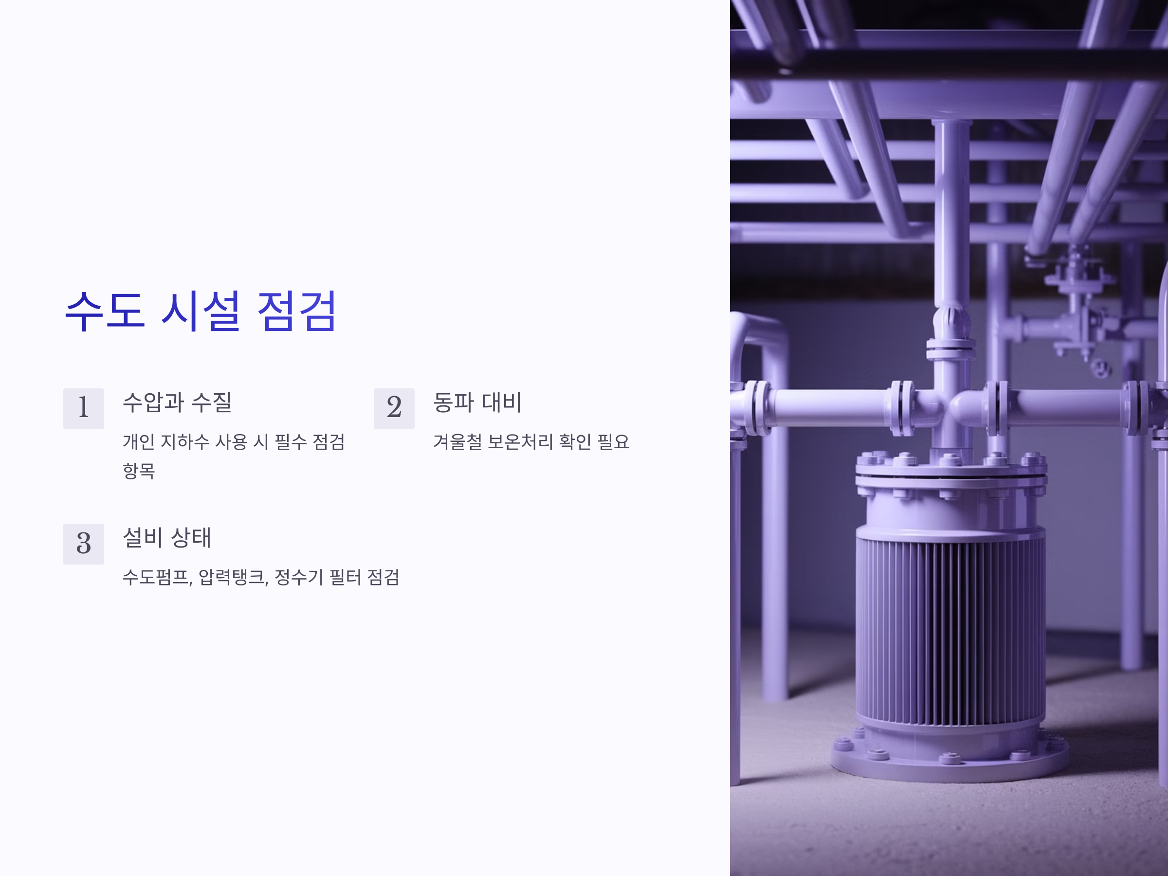 수도 시설 점검: 수압부터 급수관 노후까지 꼼꼼하게