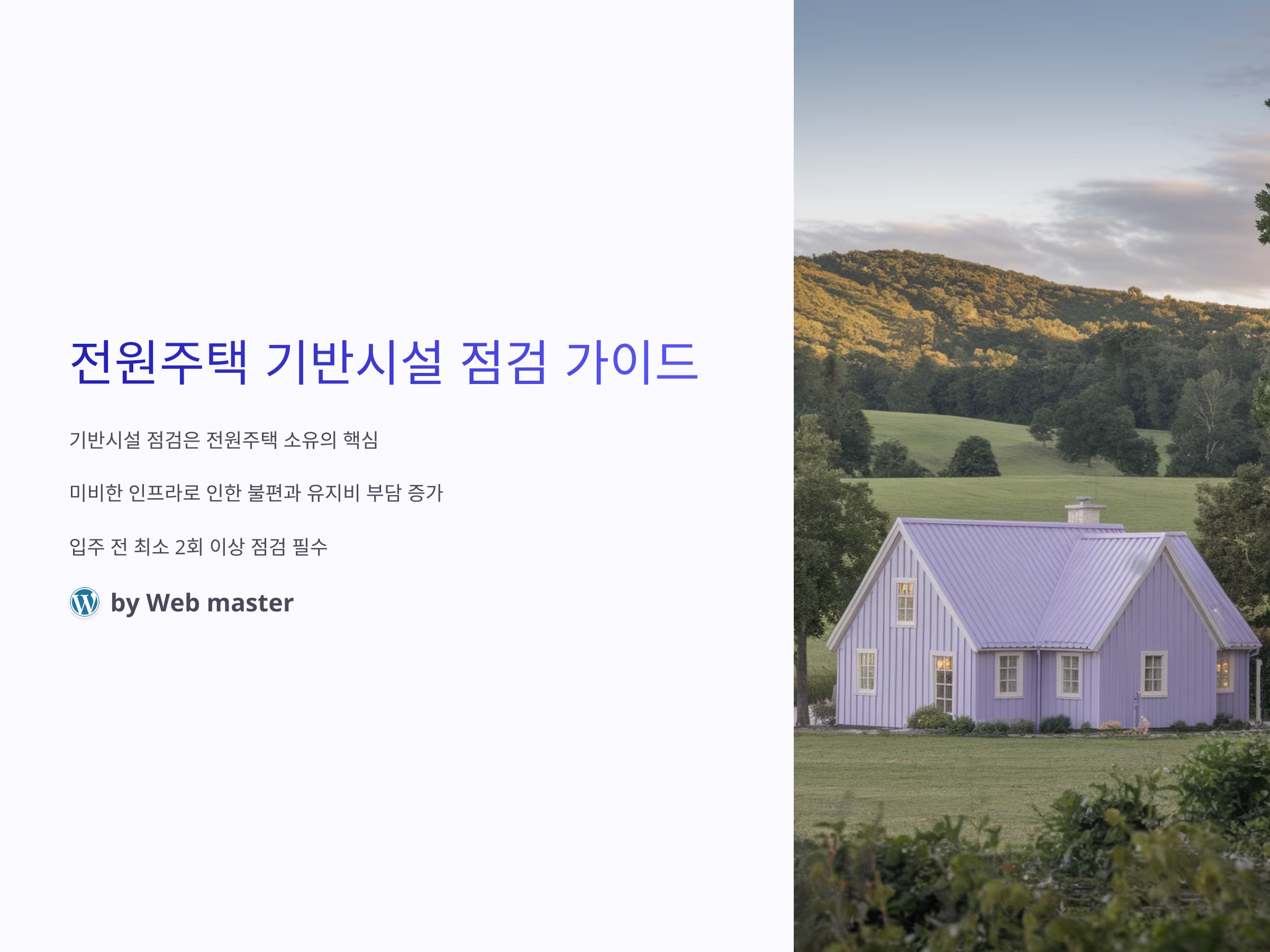 전원주택을 계획하거나 이미 보유하고 있다면, 가장 먼저 체크해야 할 것이 바로 기반시설 점검입니다. 최근 전원주택 수요가 증가하면서 수도, 전기, 오수처리, 통신 등 인프라 미비로 인한 불편과 유지비 부담이 화두에 오르고 있습니다. 특히, 겨울철 동파 문제나 우기 때 배수시설 미비로 인한 침수 사고까지 잇따르면서, 사전 점검의 중요성이 더 커졌습니다. 전문가들은 입주 전 최소 2회 이상의 시설 점검과, 이후 정기적인 관리가 필수라고 강조합니다. 또한, 2025년부터 농어촌 기반시설 관리 기준이 강화될 예정이어서, 기존 전원주택 보유자도 점검과 보수를 서둘러야 합니다. 지금부터 전원주택의 필수 기반시설 점검 항목을 꼼꼼히 살펴보고, 문제가 생기기 전에 예방하는 방법까지 안내해드리겠습니다.
