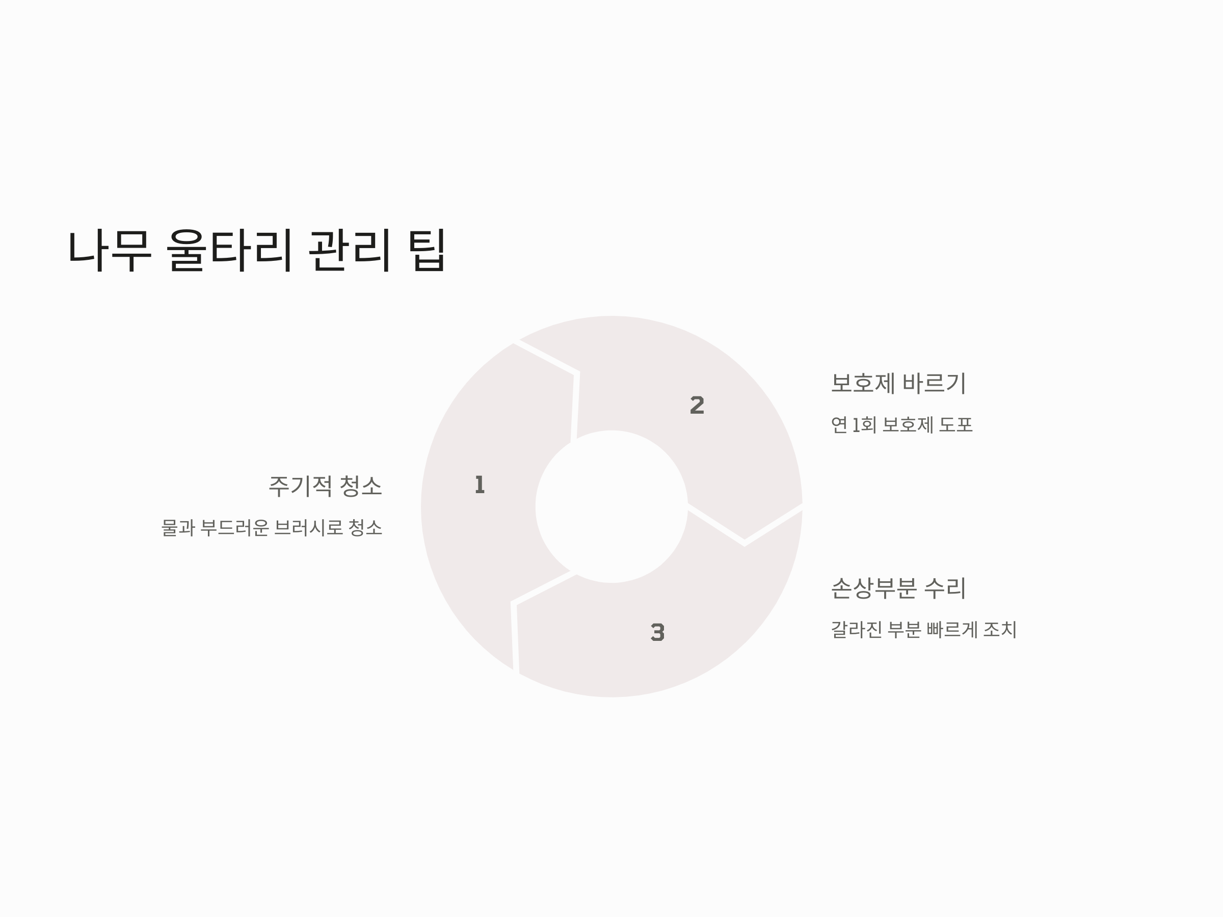 울타리가 손상되거나 갈라진 부분이 있다면, 빠르게 수리하는 것이 중요합니다. 나무가 손상된 채로 방치되면 더 큰 문제가 될 수 있습니다.