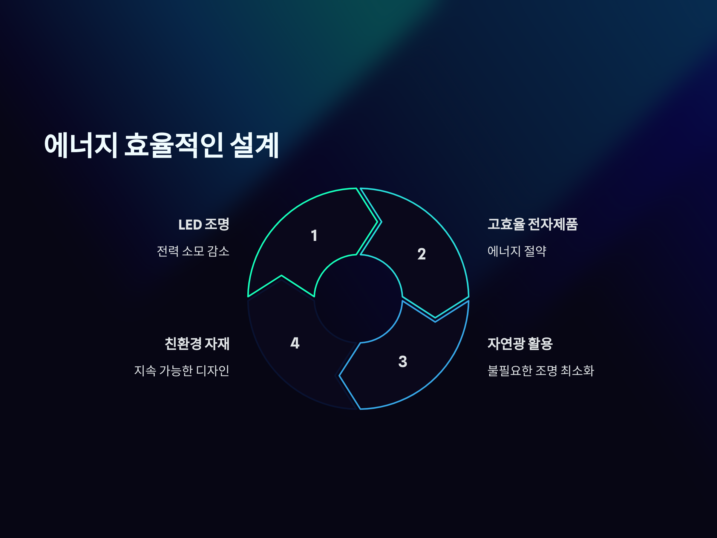 전원주택에서 주방은 가족들이 자주 이용하는 공간이기 때문에 에너지 효율성을 고려한 설계가 필수적입니다. 예를 들어, LED 조명이나 고효율 전자제품을 사용하여 전력 소모를 줄이는 방법이 있습니다. 또한, 창문을 통해 자연광을 충분히 들여놓으면 낮에는 불필요한 조명을 켜지 않아도 됩니다. 더불어, 친환경적인 자재를 사용하거나 물 절약 기능이 있는 기기들을 배치하는 것도 전원주택의 특성에 맞는 맞춤형 주방 인테리어로 효과적입니다.