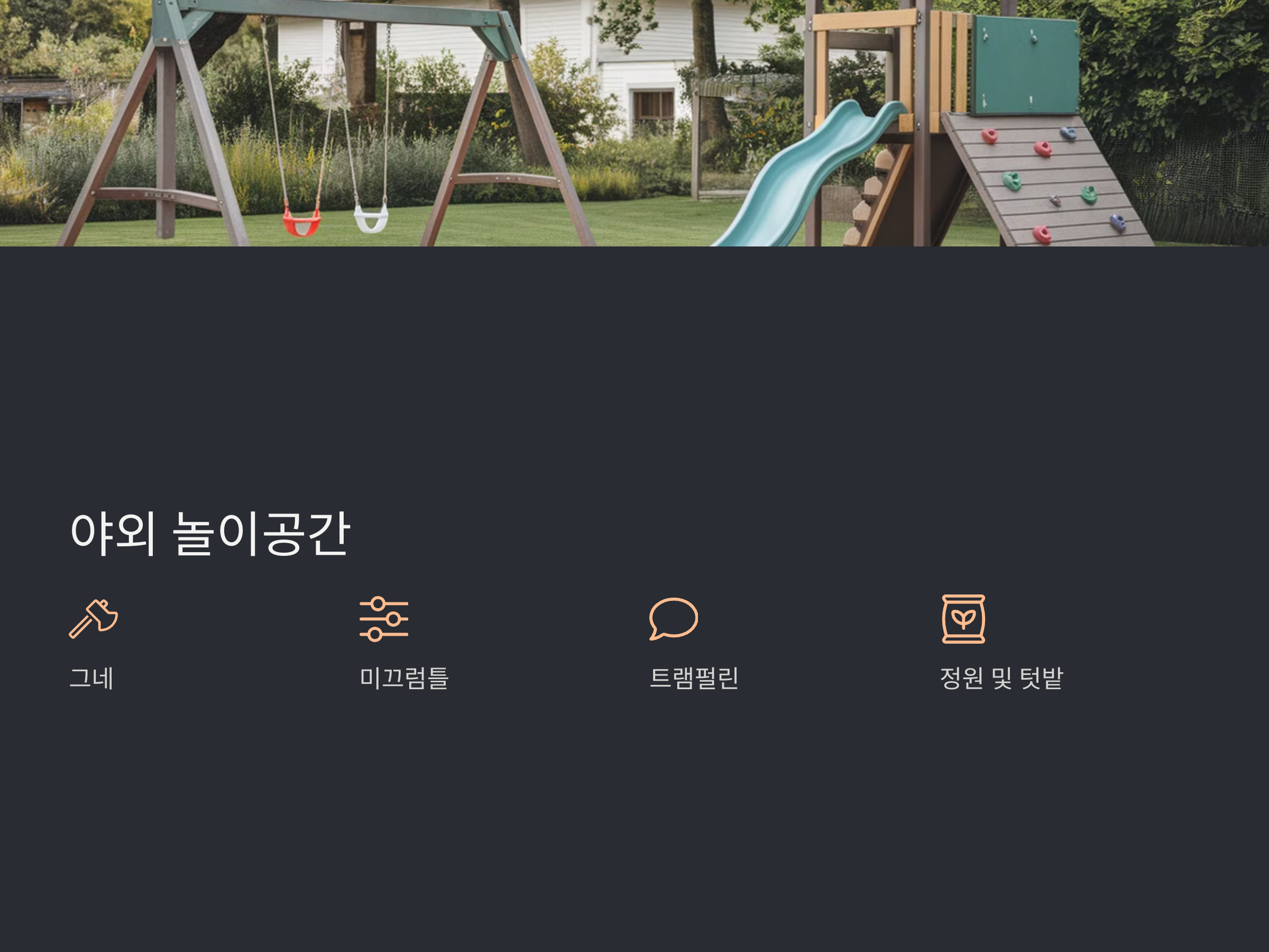 전원주택 자녀 놀이공간 설계는 자녀들의 신체 발달과 창의력 향상에 매우 중요한 역할을 합니다. 안전하고 자유로운 놀이공간을 제공하면서, 자연과의 교감을 통해 아이들이 성장할 수 있는 환경을 만드는 것이 중요합니다. 실내와 실외 공간을 잘 연결하고, 자녀의 연령에 맞는 다양한 놀이시설을 설치하여, 아이들이 즐겁고 건강하게 놀 수 있는 공간을 만들어주세요.