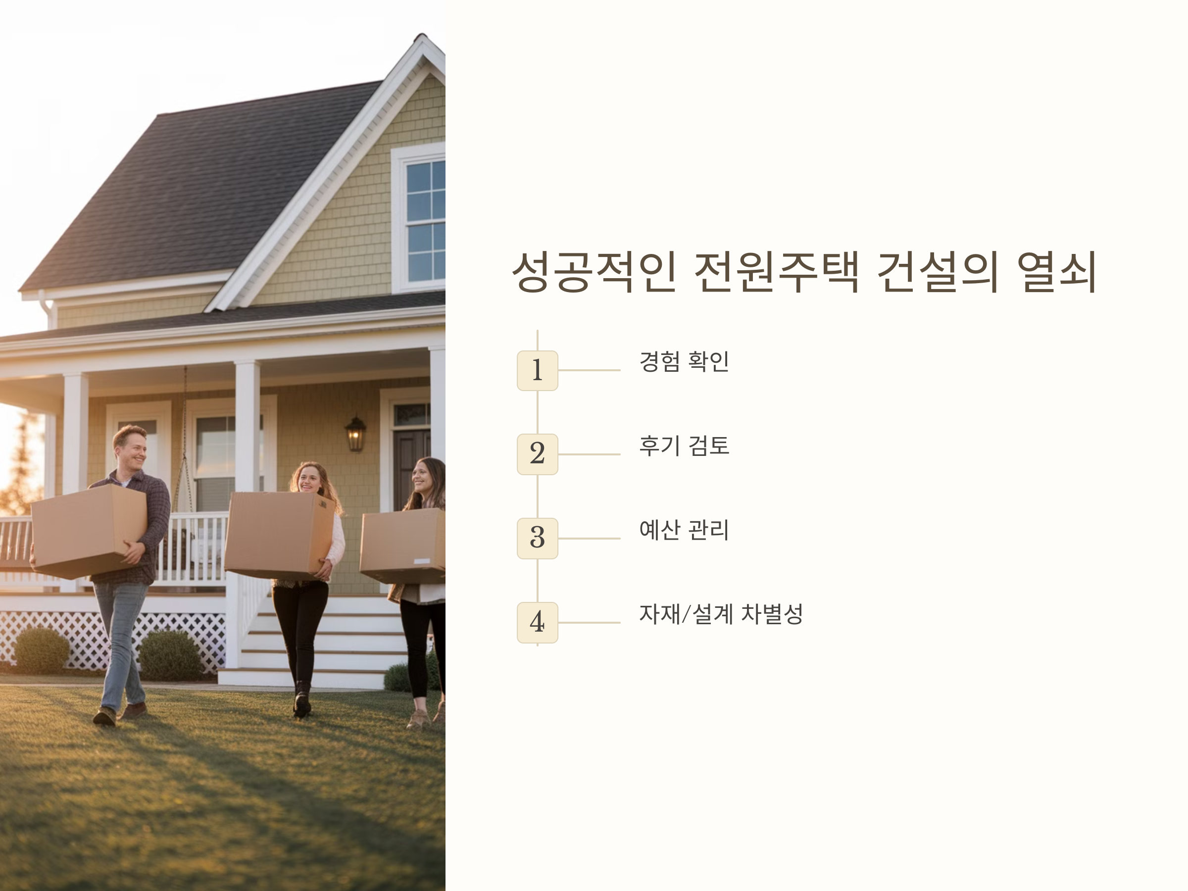 전원주택을 꿈꾸는 사람이라면, 시공업체 선택에서 실수를 피하는 것이 매우 중요합니다. 제대로 된 업체를 고르지 않으면 예산 초과, 공기 지연, 품질 미흡 등의 문제를 겪을 수 있습니다. 그렇다면, 전원주택 시공업체를 선택하는 데 있어 무엇을 가장 우선적으로 고려해야 할까요?
