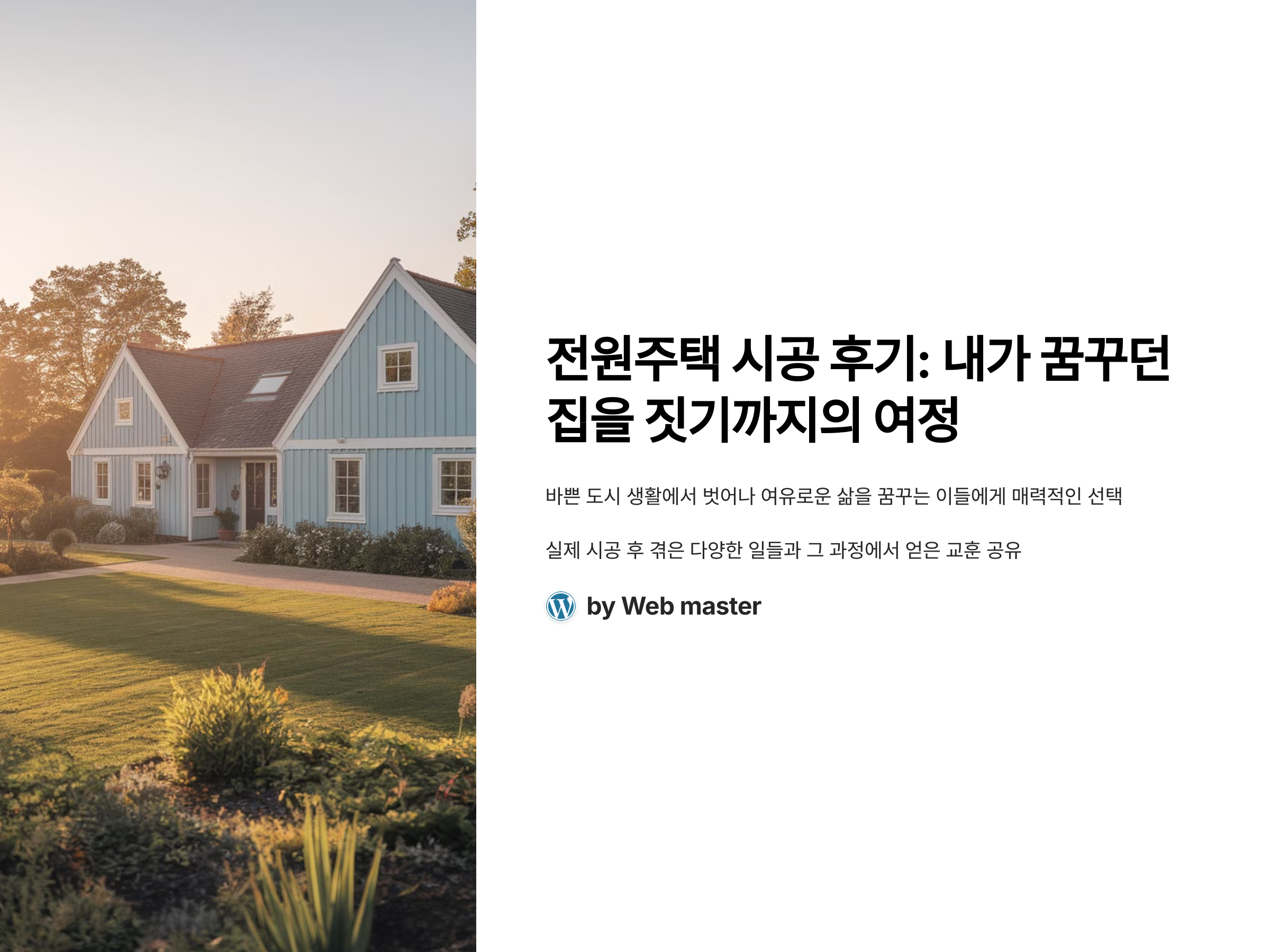 전원주택 시공은 많은 계획과 준비가 필요한 일이지만, 그 과정을 지나면 정말 가치 있는 결과를 얻을 수 있습니다. 이 후기를 통해 조금 더 준비된 마음으로 전원주택을 지을 수 있기를 바랍니다. 여러분도 꿈의 집을 현실로 만들어보세요!