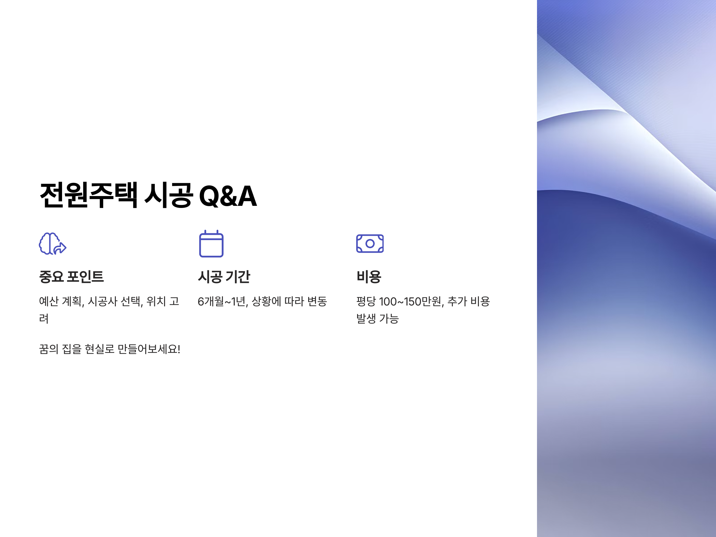 Q&A: 전원주택 시공에 대한 자주 묻는 질문