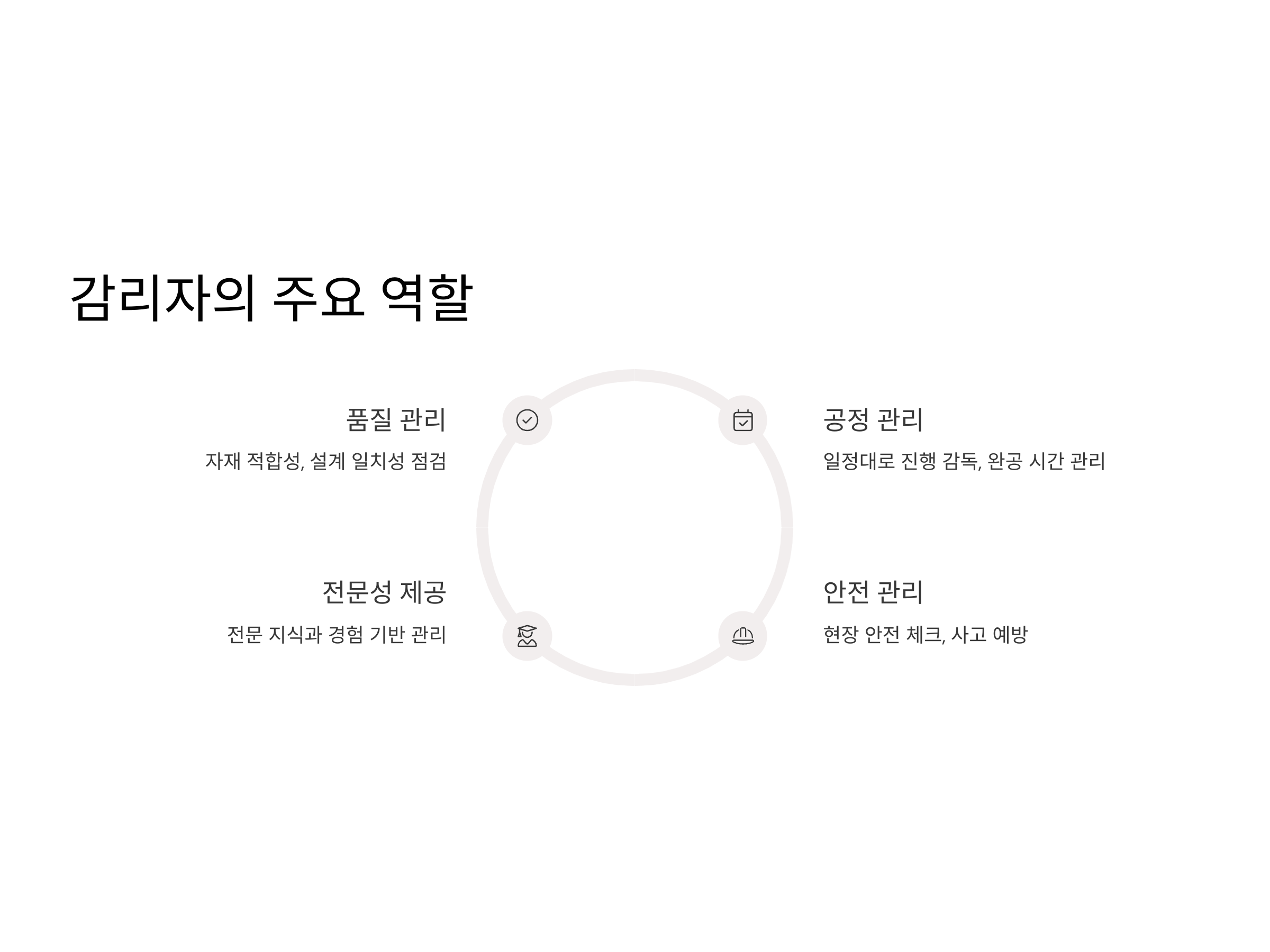감리자의 주요 역할은 크게 세 가지로 나눌 수 있습니다. 첫째, 품질 관리입니다. 감리자는 건축 자재가 적합하고, 시공이 설계에 맞게 이루어지고 있는지 점검합니다. 둘째, 공정 관리입니다. 감리자는 공사가 일정대로 진행되도록 감독하고, 계획된 시간 안에 건축물이 완성될 수 있도록 도와줍니다. 셋째, 안전 관리입니다. 감리자는 현장에서의 안전을 체크하여, 건축 과정 중 발생할 수 있는 사고를 예방합니다.