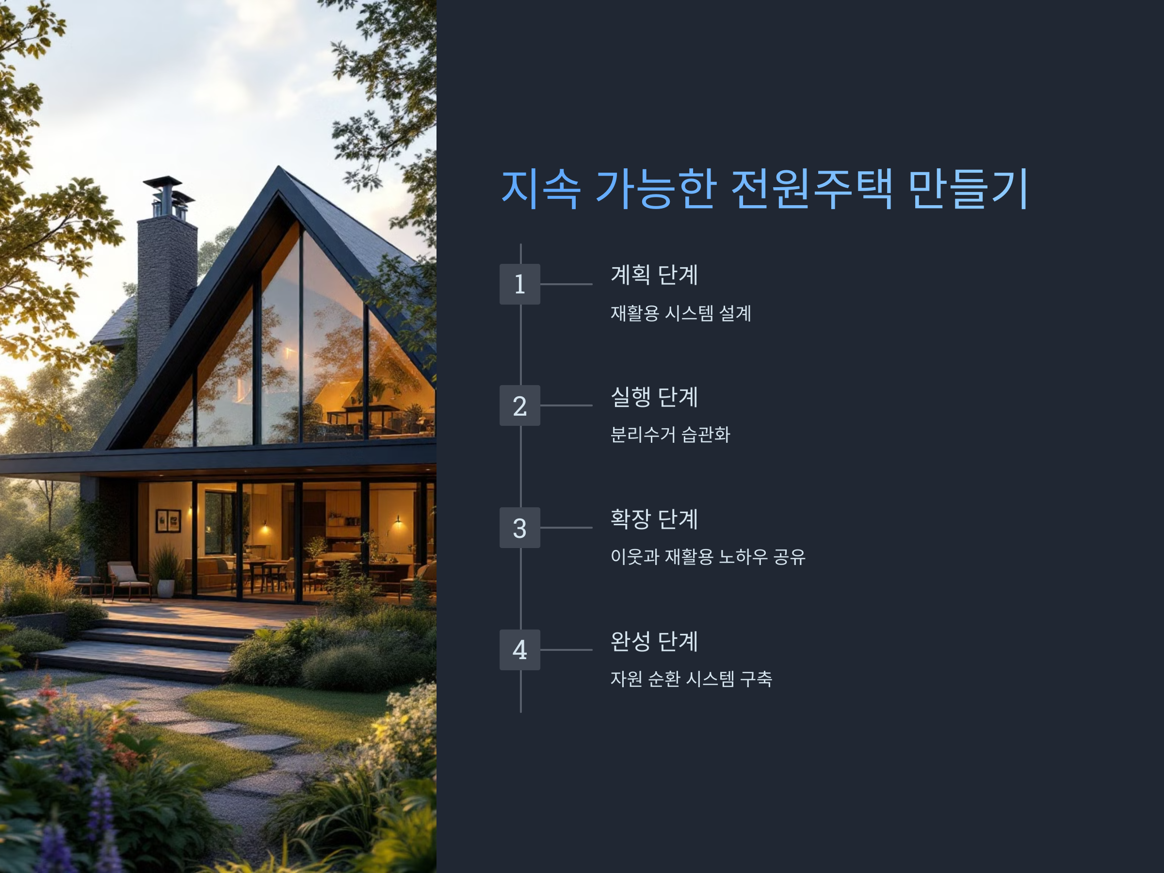 전원주택의 외부 조명은 단순히 집을 밝히는 기능을 넘어서, 집과 자연을 하나로 연결하는 중요한 역할을 합니다. 조명의 스타일, 배치, 밝기 등을 고려하여 집의 외관을 강조하고, 야경을 즐길 수 있는 공간을 만들 수 있습니다. 또한, 에너지 효율성을 고려한 조명 선택은 장기적인 비용 절감뿐만 아니라, 환경 보호에도 기여할 수 있습니다. 전원주택의 외부 조명을 잘 활용하면, 더욱 아늑하고 멋진 공간을 만들 수 있을 것입니다.
