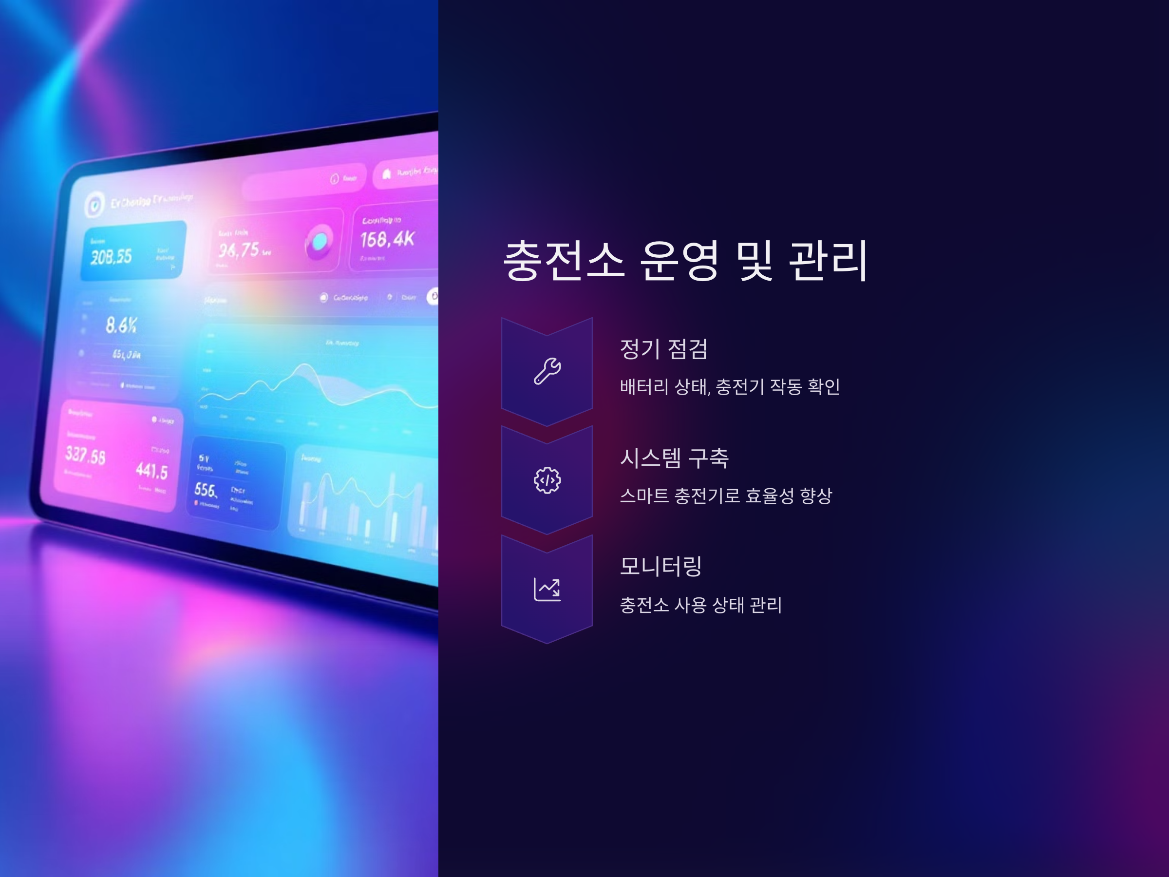 전기차 충전소를 설치한 후에는 충전소의 운영과 관리가 중요합니다. 특히 충전소는 정기적인 점검과 관리가 필요합니다. 배터리 상태, 충전기의 정상 작동 여부 등을 주기적으로 점검해야 하며, 필요시 충전기를 수리하거나 부품을 교체해야 할 수 있습니다.