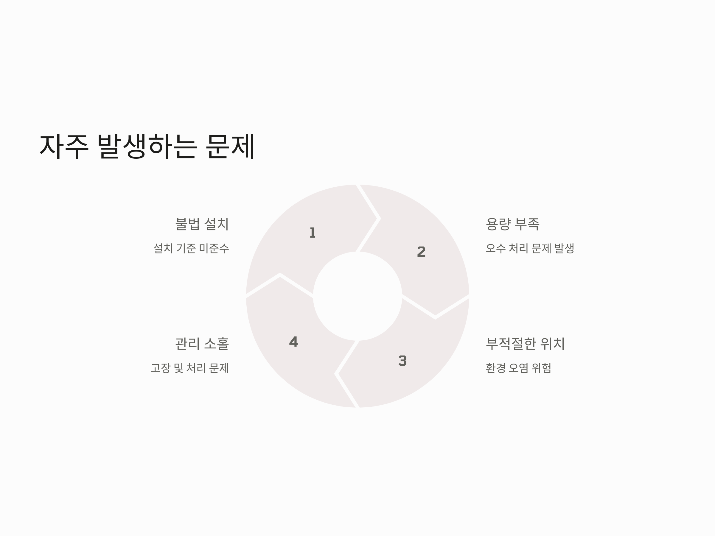 전원주택 정화조 설치 시 가장 흔하게 발생하는 문제는 불법 설치나 설치 기준을 지키지 않는 것입니다. 특히 정화조 용량이 부족하거나 설치 위치가 부적절하면 하수 처리에 문제가 생길 수 있습니다. 또한, 정화조의 유지 관리가 소홀하면 고장이 나거나 오수 처리 과정에서 문제가 발생할 수 있습니다.