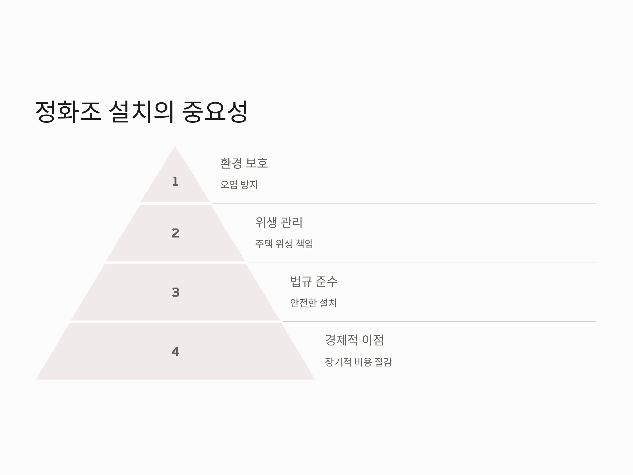 정화조 설치 시에는 반드시 전문가의 도움을 받거나 관련 규정을 잘 숙지한 후 설치를 진행하는 것이 바람직합니다. 제대로 된 정화조 설치와 관리는 환경뿐만 아니라, 경제적인 부담을 줄이는 데에도 중요한 역할을 합니다.
