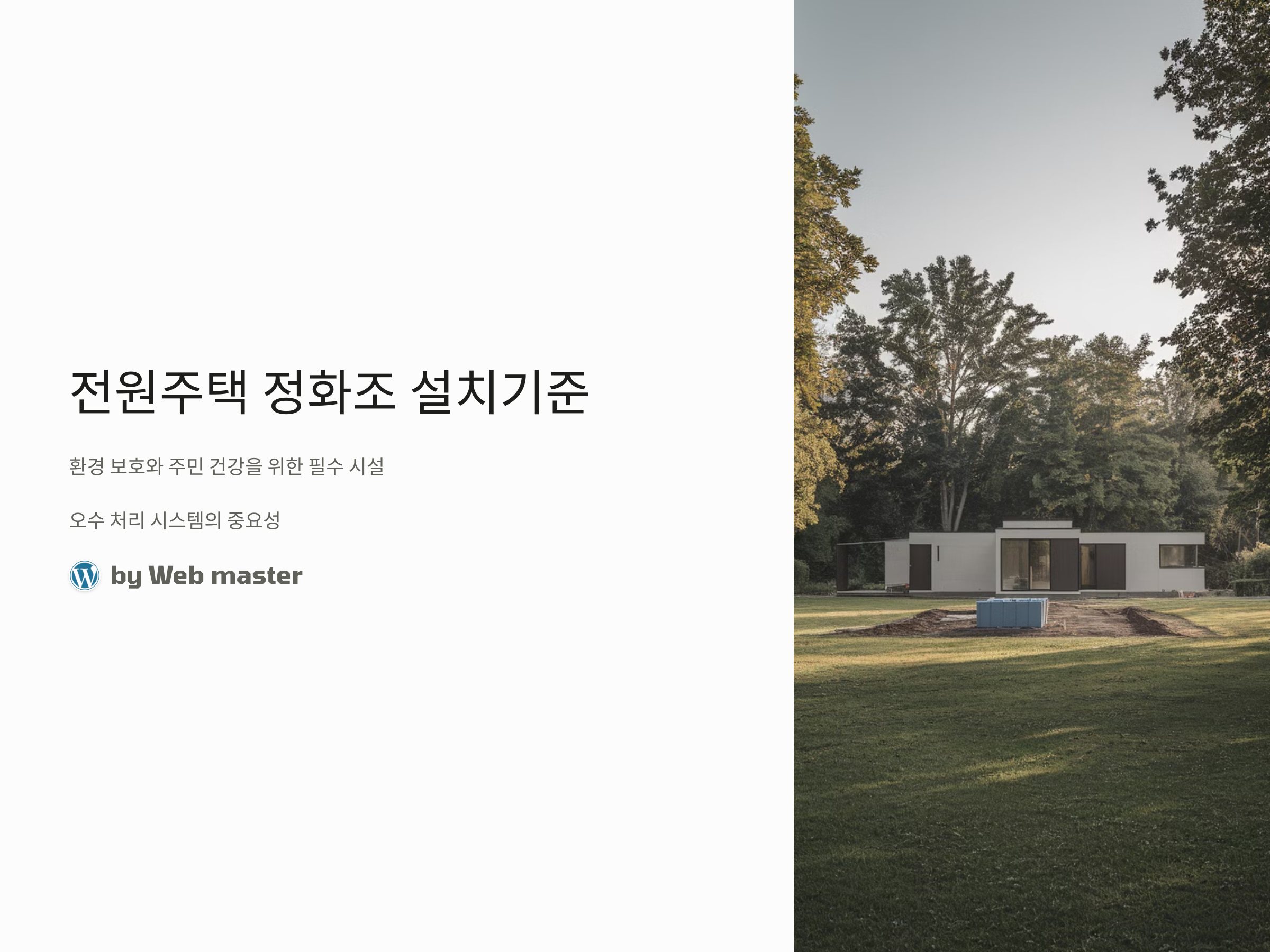 전원주택의 정화조 설치는 단순히 물을 처리하는 것이 아니라 환경 보호와 관련된 중요한 기준을 따릅니다. 한국에서는 정화조 설치와 관련된 법적 기준을 환경부 및 각 지방자치단체에서 제시하고 있습니다. 전원주택의 경우도 이러한 기준을 따라야 하며, 주택의 규모나 위치에 따라 다르게 적용될 수 있습니다.