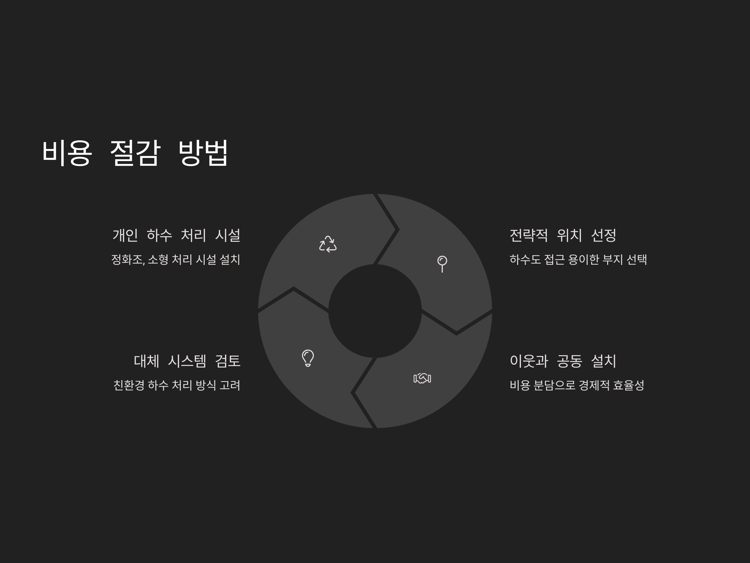 하수도 인입 비용을 줄이려면, 공공 하수도를 이용하는 대신 개인 하수 처리 시스템을 설치하는 방법도 고려할 수 있습니다. 하지만, 이 역시 설치와 유지 관리에 비용이 들기 때문에 모든 상황을 고려해야 합니다.