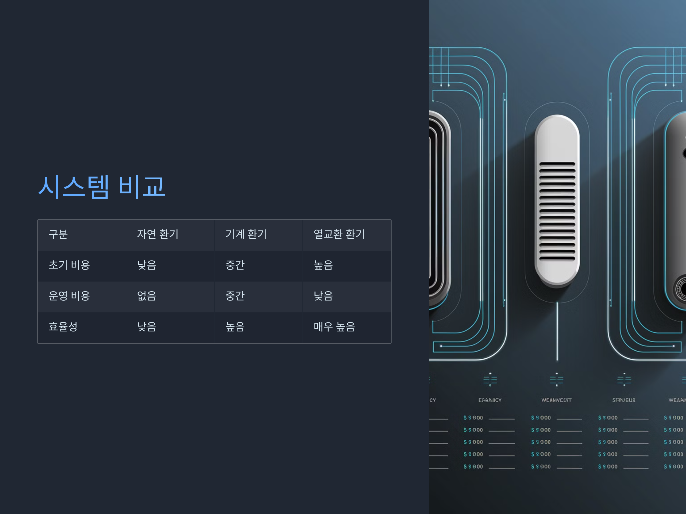 - 에너지 효율성: 환기 시스템을 통해 난방 및 냉방 비용을 절감할 수 있는지 여부를 중요하게 고려해야 합니다.
