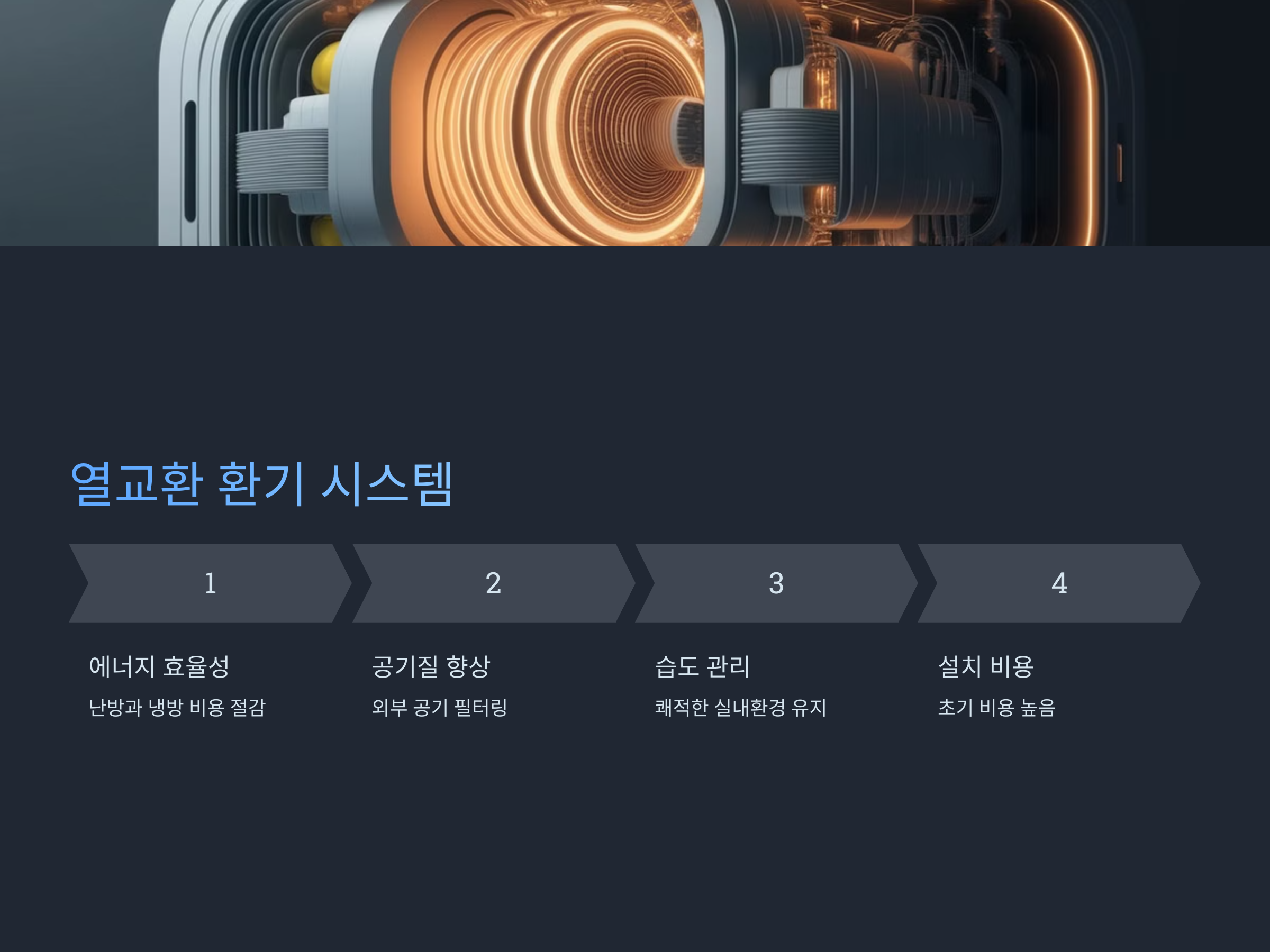 - 에너지 효율성: 외부 공기와 내부 공기의 열을 교환하여 난방과 냉방 비용을 절감할 수 있습니다.