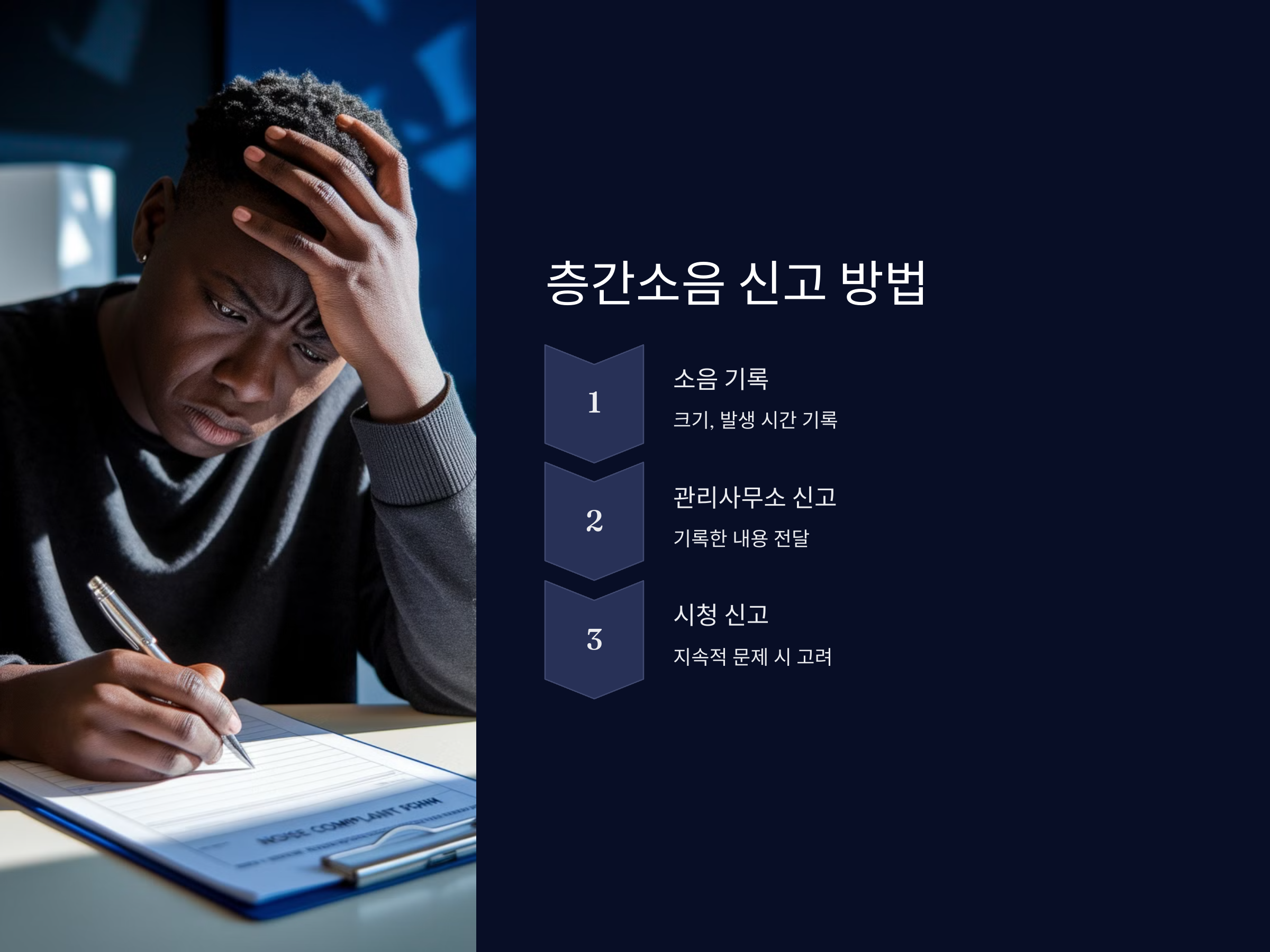 층간소음이 심각할 경우, 관리사무소나 시청에 신고할 수 있습니다. 이때는 소음의 크기와 발생 시간 등을 기록하여 신고하는 것이 중요하며, 신고 후 관리사무소나 관련 부서에서 조치를 취할 수 있도록 해야 합니다.