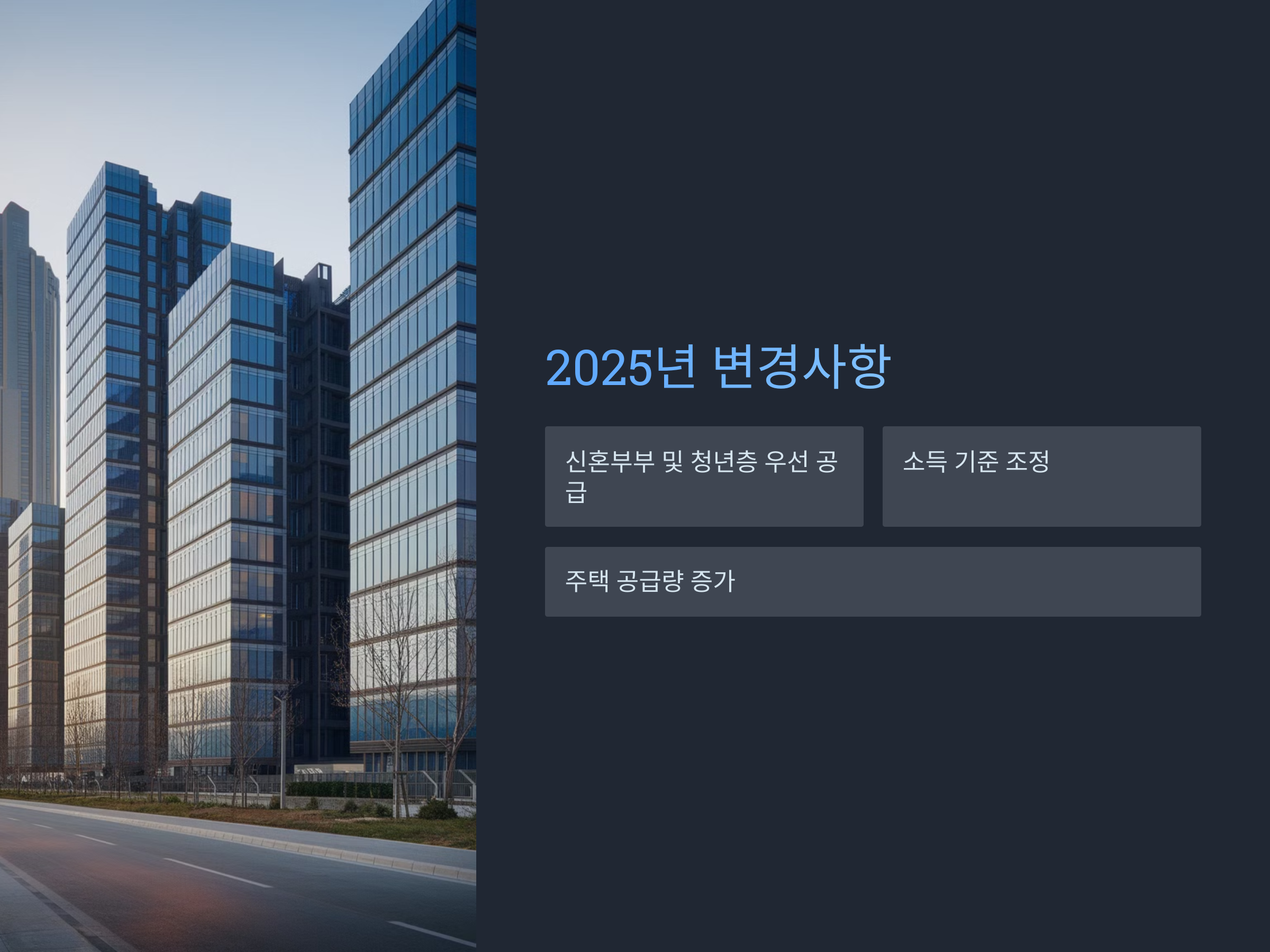 2025년부터는 신혼부부와 청년층을 위한 임대주택 공급이 크게 늘어나므로, 이들에 대한 우선순위가 높아질 것입니다.