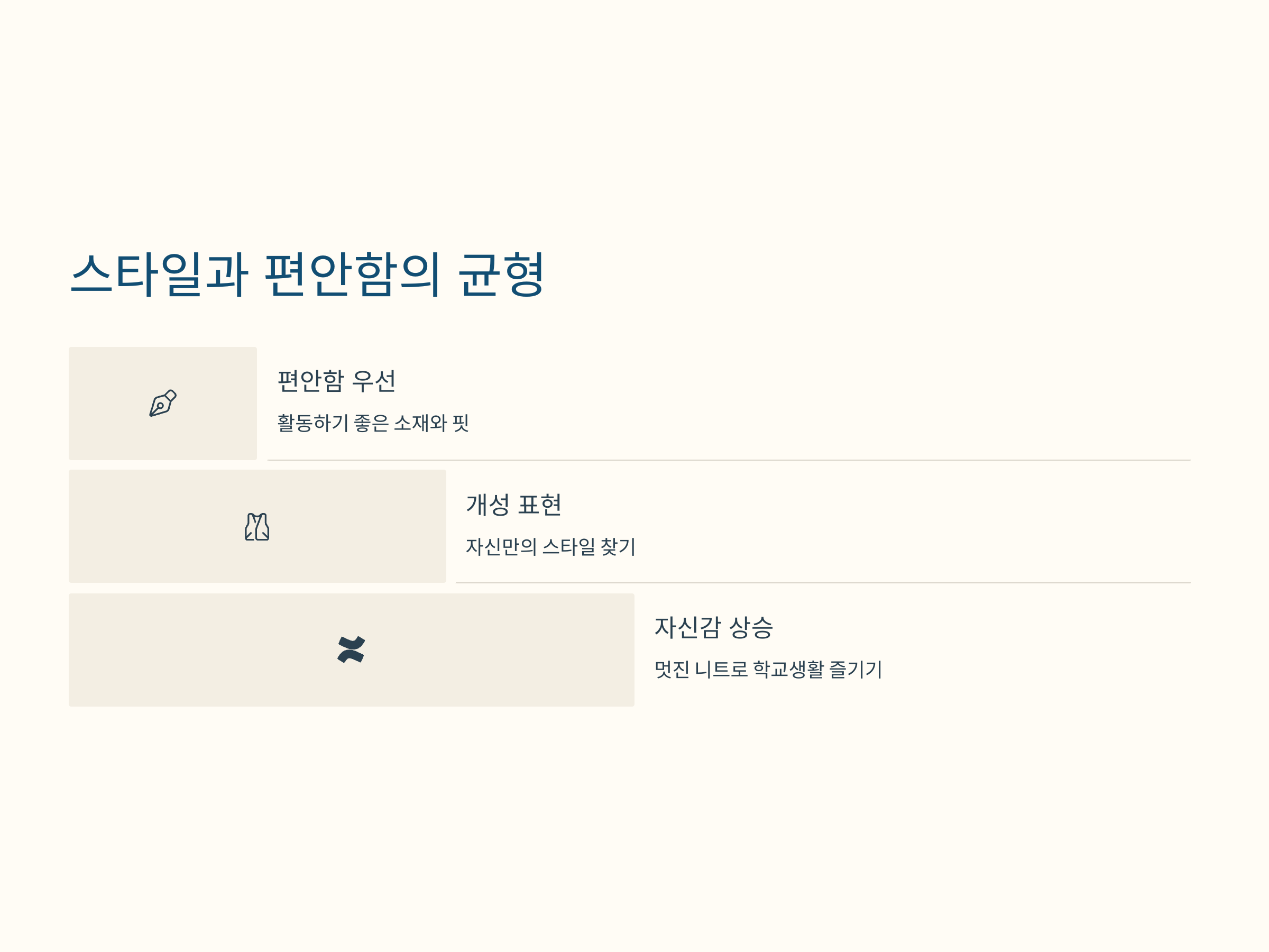 니트는 기본적으로 따뜻하고 부드러운 소재로 만든 옷입니다. 특히 중학생들에게는 학교에서 활동을 많이 하므로 편안함이 가장 중요한 요소입니다. 다만, 스타일도 중요하기 때문에 너무 단조로운 디자인보다는 약간의 포인트가 있는 니트를 선택하는 것이 좋습니다. 예를 들어, 배색 디자인이나 귀여운 패턴이 들어간 니트는 학생들에게 인기가 많습니다.