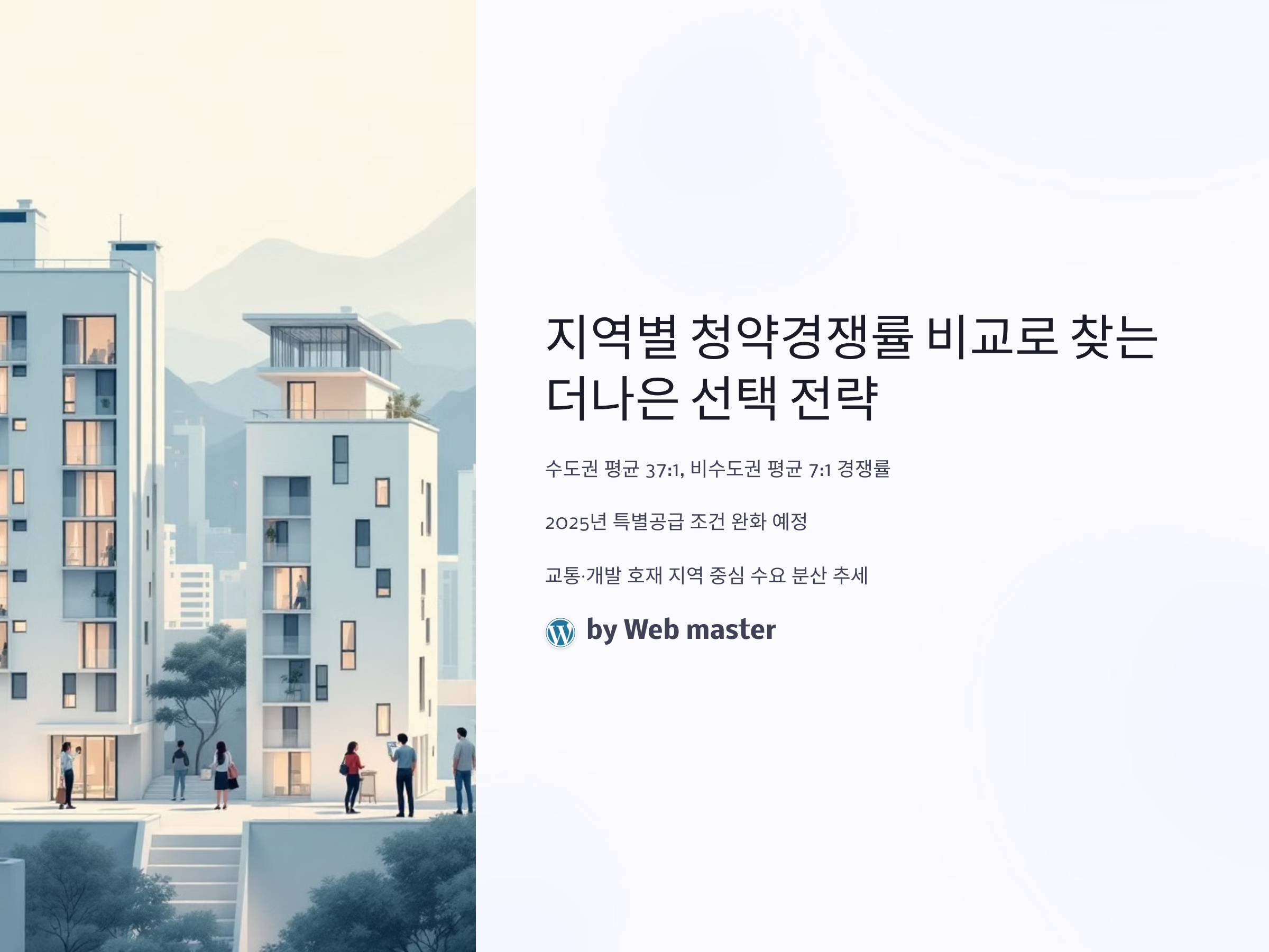 최근 부동산 시장의 변동성과 정부 정책의 변화로 인해 아파트 청약 열기가 더욱 뜨거워지고 있습니다. 특히 지역별로 청약 경쟁률이 극명하게 갈리면서 실수요자들은 어디에 청약을 넣어야 유리할지 고민이 깊어지고 있는데요. 수도권의 고공행진 경쟁률, 지방의 청약 미달 사태 등 이슈들이 혼재하며 ‘지역 선택’이 청약 성공의 핵심 요소로 떠오르고 있습니다. 최근 한국부동산원 청약홈 자료에 따르면 2024년 하반기 수도권 주요 지역의 경쟁률은 평균 37:1, 비수도권은 평균 7:1 수준으로 집계되었으며, 일부 지역은 100:1을 넘는 곳도 있었습니다.