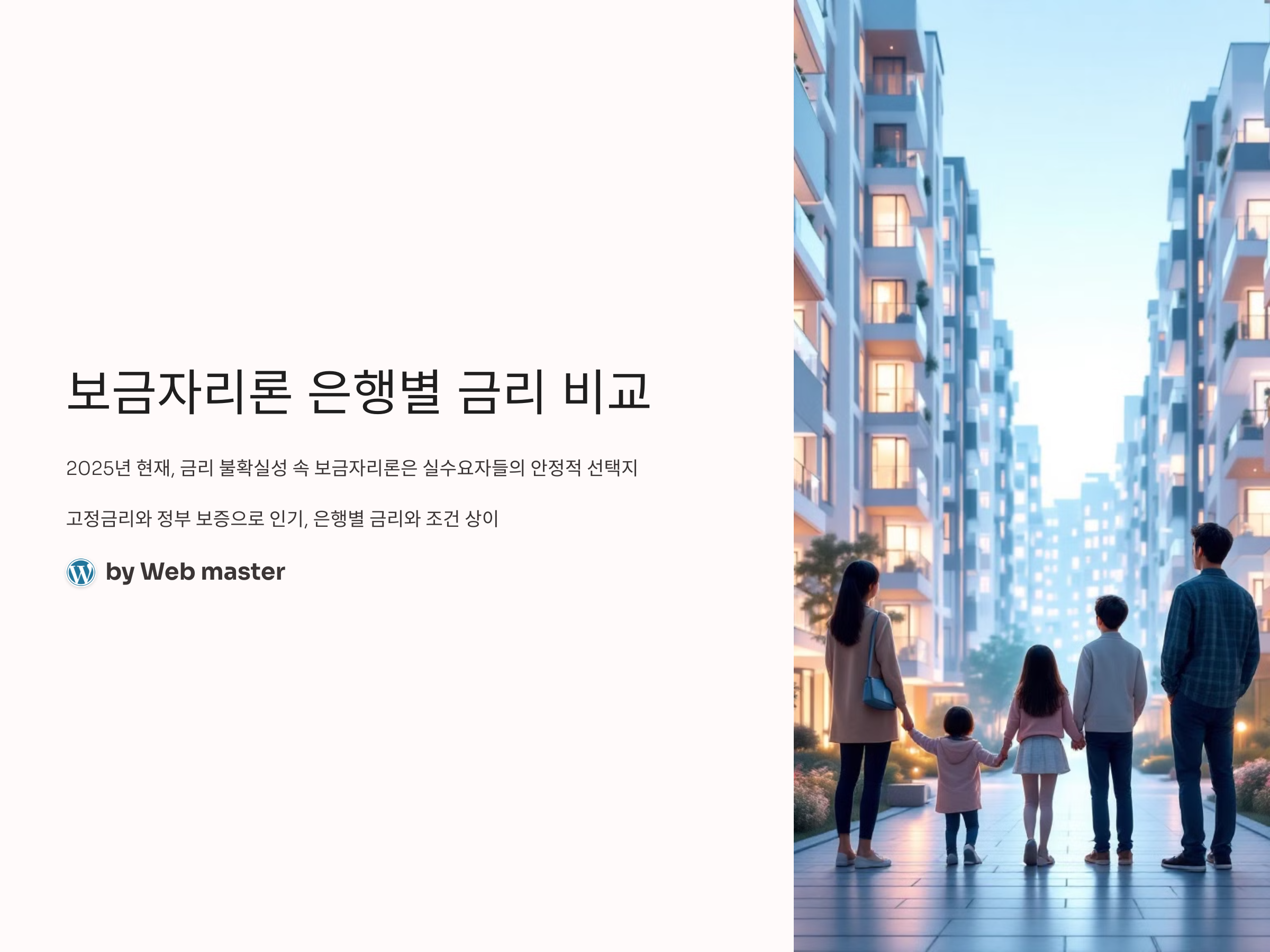 2025년 현재, 금리 시장은 여전히 불확실성이 짙은 상황입니다. 특히 주택담보대출 시장에서 보금자리론은 실수요자들에게 안정적인 선택지로 주목받고 있으며, 고정금리와 정부 보증이라는 강력한 장점 덕분에 꾸준히 인기를 끌고 있습니다. 하지만 은행별로 제공하는 금리가 상이하고, 각 은행의 조건과 우대 항목이 달라 실질적으로 적용받는 금리는 천차만별입니다. 이에 따라 은행별 보금자리론 금리 비교는 선택이 아닌 필수가 되고 있으며, 2025년 4월 기준 최신 정보로 분석된 본 포스팅은 보다 유리한 선택을 가능하게 만들어줍니다.