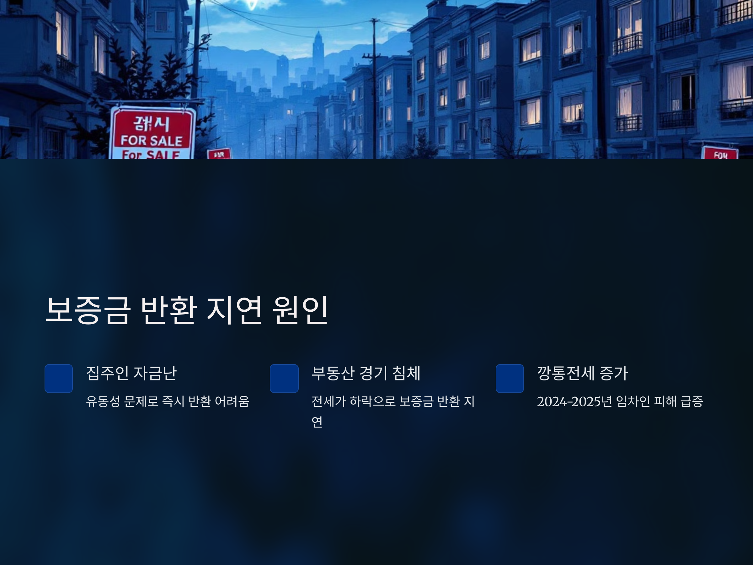 보증금 반환 지연의 가장 흔한 원인은 집주인의 자금난 혹은 새로운 세입자가 구해지지 않아 생기는 유동성 문제입니다. 전세보증금은 사실상 집주인의 채무와 같기 때문에 계약 종료 시 즉시 반환되어야 합니다. 하지만 부동산 경기 침체로 인해 전세가가 하락하거나, 깡통전세와 같은 사례가 발생하면서 집주인이 보증금을 제때 돌려주지 못하는 경우가 늘어나고 있습니다.