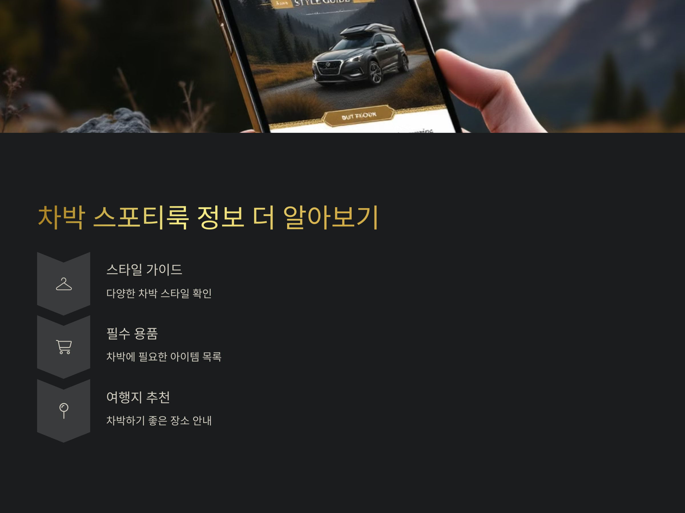 차박 스타일 더 알아보기 필수 차박 용품 확인하기 차박 여행지 추천