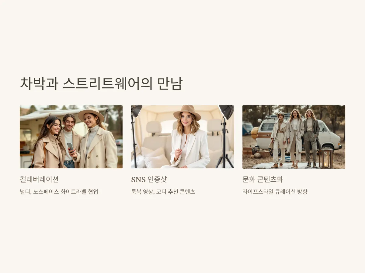 이러한 컬렉션은 ‘SNS 인증샷’이라는 소비자 행동과 맞물려 큰 시너지를 냈다. 인스타그램, 유튜브, 틱톡 등에서 차박패션 룩북 영상이나 코디 추천 콘텐츠가 확산되었고, 이는 제품 판매에도 직결되는 높은 전환율을 만들어냈다. 따라서 패션 브랜드들은 단순한 의류 제공을 넘어, 차박 라이프스타일 자체를 디자인하고 큐레이션하는 방향으로 나아가고 있다.
