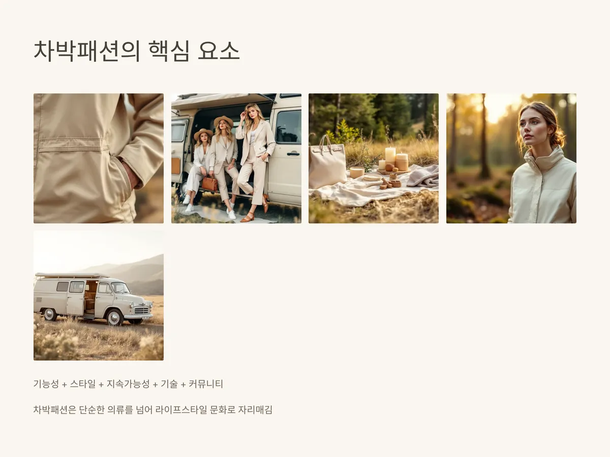 또한, ‘감성 공유’와 ‘공동체적 연결’이라는 가치가 더욱 중요해지며, 브랜드들은 커뮤니티 기반 콘텐츠 마케팅에 주력할 것이다. SNS에서 ‘차박 인플루언서’들이 추천하는 룩북, 캠핑지 리뷰와 코디 콘텐츠가 주요 소비 유도 수단이 될 것이며, 이는 브랜드 충성도와 재구매율 상승으로 직결될 가능성이 크다.