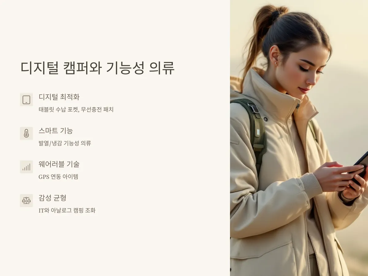 디지털 노마드와 디지털 캠퍼의 등장은 차박패션의 또 다른 진화를 이끌고 있다. 태블릿 수납 가능 포켓, 무선충전 패치, 발열/냉감 기능성 의류 등은 이제 단순한 기능이 아닌 필수 요소가 되었다. ‘디스이즈네버댓’과 같은 브랜드는 아웃도어를 모티브로 하면서도 디지털 기기에 최적화된 디자인을 선보이며, IT 감성과 아날로그 캠핑 감성을 동시에 충족시켰다.