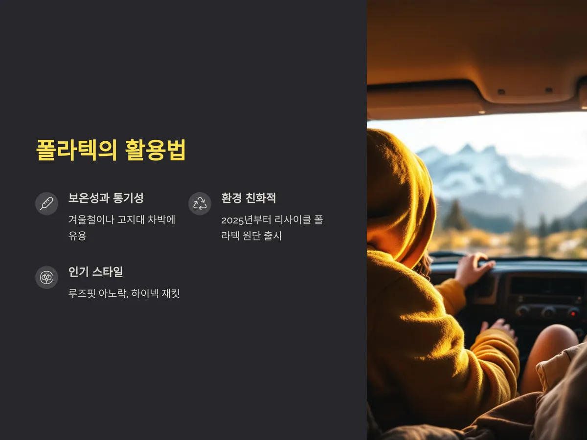 # 차박 캠핑이 편하고 멋스러워지는 놀라운 코디법, 소재별로 정리해봤습니다차박 캠핑의 인기가 급상승하면서 패션 역시 단순한 야외활동복을 넘어 스타일과 기능을 모두 갖춘 차박룩으로 진화하고 있습니다. 특히 2025년 봄 시즌부터는 ‘소재 중심의 코디’가 큰 화제가 되고 있으며, 기능성뿐만 아니라 미적 감각까지 반영된 코디가 주목받고 있습니다. 차박의 특성상 제한된 공간과 변화무쌍한 날씨에 대응하려면 ‘소재 선택’이 매우 중요합니다.폴라텍, 메리노울, 나일