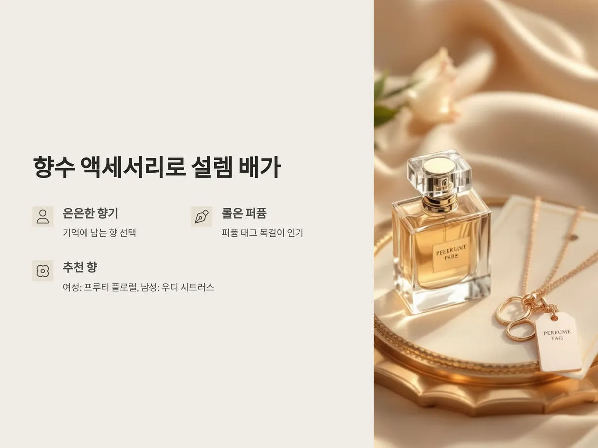 여성의 경우 프루티 플로럴 계열, 남성은 우디 시트러스 계열이 고백 상황에 잘 어울립니다. 액세서리형 향수는 감정 전달에 더 깊이를 주며, 사소한 터치 하나에도 섬세함을 더할 수 있습니다.