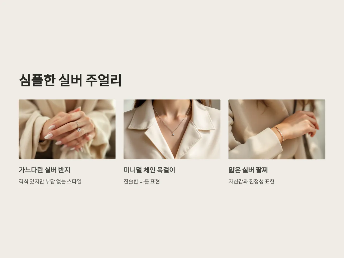 심플하지만 존재감 있는 실버 주얼리는 고백에 잘 어울리는 아이템입니다. 특히 가느다란 실버 반지나 미니멀 체인 목걸이는 격식은 차리되, 부담스럽지 않게 스타일을 완성할 수 있는 요소로 손꼽힙니다. 상대에게 ‘꾸밈 없이 진솔한 나’를 표현하는 방식으로 활용되며, 자연스럽게 애정 어린 눈빛과 손길이 오가게 만들어줍니다.