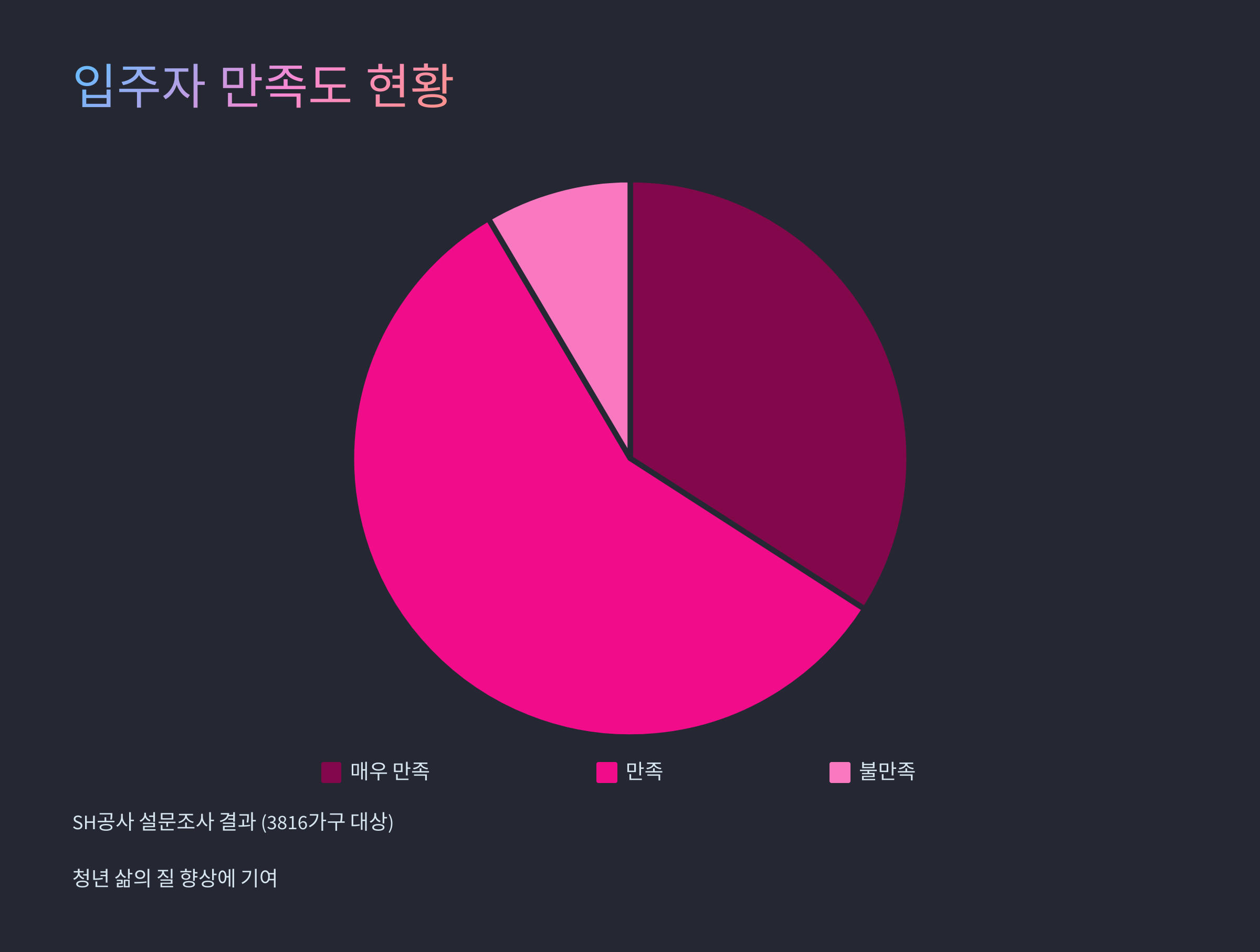 최근 SH공사에서 실시한 설문조사에 따르면, 청년안심주택 입주자 3816가구 중 34.1%는 '매우 만족', 57.4%는 '만족'이라고 답변하여 전체의 91.5%가 주거에 만족하고 있는 것으로 나타났습니다. 이는 청년안심주택이 청년들의 주거 안정과 삶의 질 향상에 크게 기여하고 있음을 보여줍니다. citeturn0search9