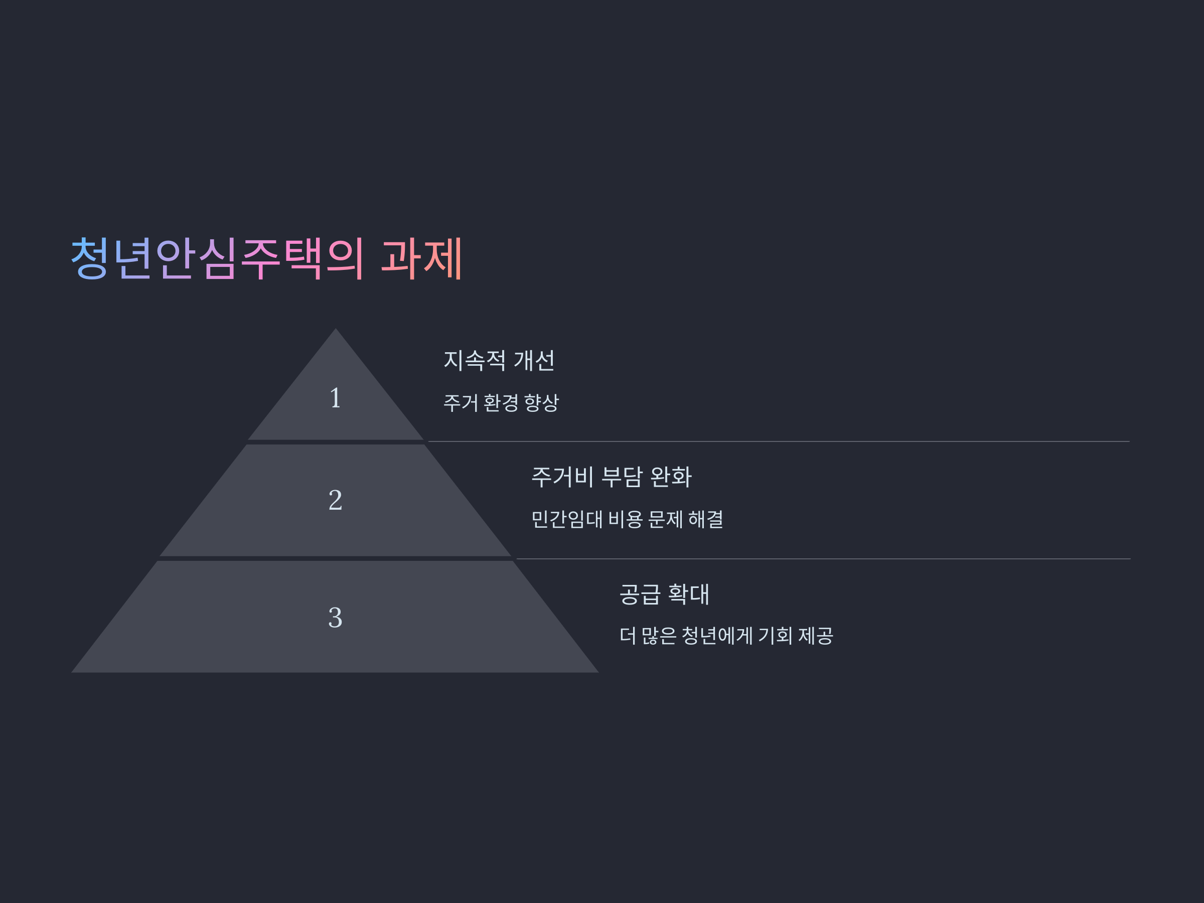 청년안심주택은 청년층의 주거 안정과 삶의 질 향상에 긍정적인 영향을 미치고 있습니다. 그러나 민간임대 입주자의 주거비 부담 증가와 만족도 저하 등의 문제점도 나타나고 있습니다. 이러한 문제를 해결하기 위해 공공임대 공급 확대와 민간임대의 주거비 부담 완화 방안 등이 필요합니다. 앞으로도 청년안심주택의 지속적인 개선과 발전을 통해 더 많은 청년들이 안정적인 주거 환경에서 생활할 수 있기를 기대합니다.