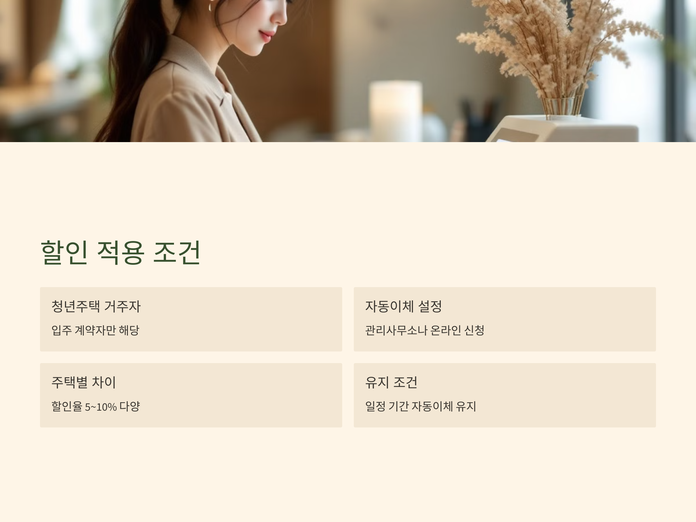 이제 여러분도 청년주택 관리비 자동이체 할인을 통해 더 나은 생활을 누리세요!