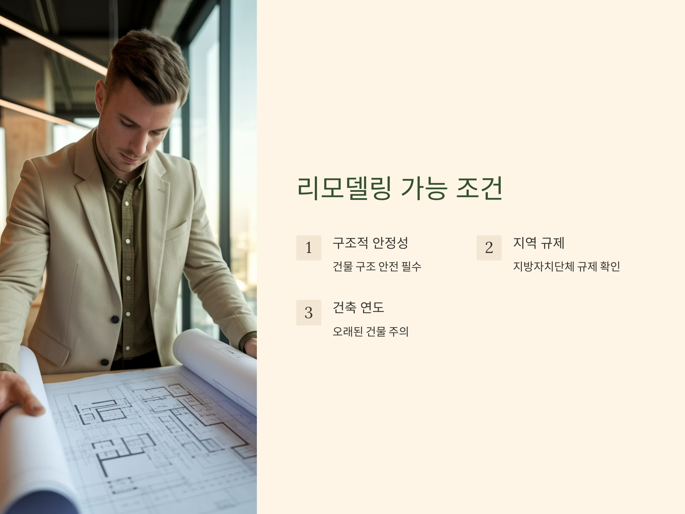 리모델링을 계획하기 전, 가장 중요한 것은 해당 청년주택이 리모델링을 위한 기본 조건을 충족하는지 확인하는 것입니다. 건물의 구조적 안전성, 건축 연도, 그리고 지역 규제 등 여러 조건들이 리모델링 가능 여부에 영향을 미칩니다. 만약 건물이 오래되어 구조적으로 불안정하다면, 리모델링이 불가능할 수 있습니다.