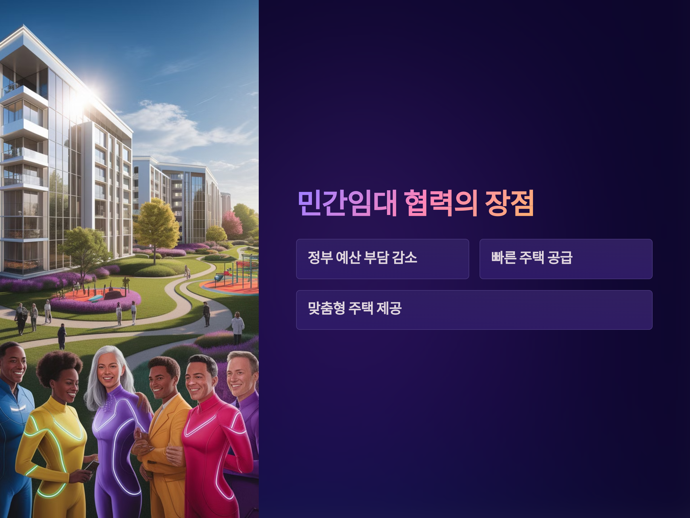 민간임대 협력 모델은 여러 가지 장점을 가지고 있습니다. 첫 번째로, 민간 기업의 참여로 더 많은 자금이 투자되어, 정부의 예산 부담을 줄일 수 있습니다. 또한, 민간 기업은 시장의 수요에 맞는 주택을 빠르게 공급할 수 있기 때문에 공급 속도 또한 중요한 장점으로 꼽힙니다. 이로 인해 청년층의 주거 문제를 보다 신속하고 효율적으로 해결할 수 있습니다.