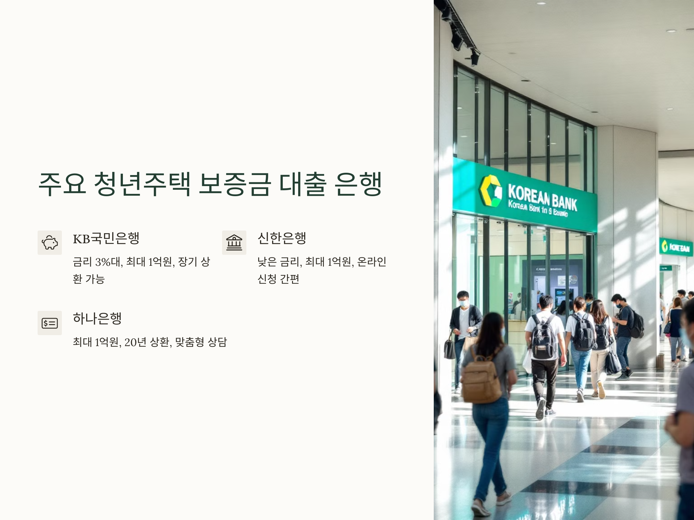 청년주택 보증금 대출을 위한 주요 은행들