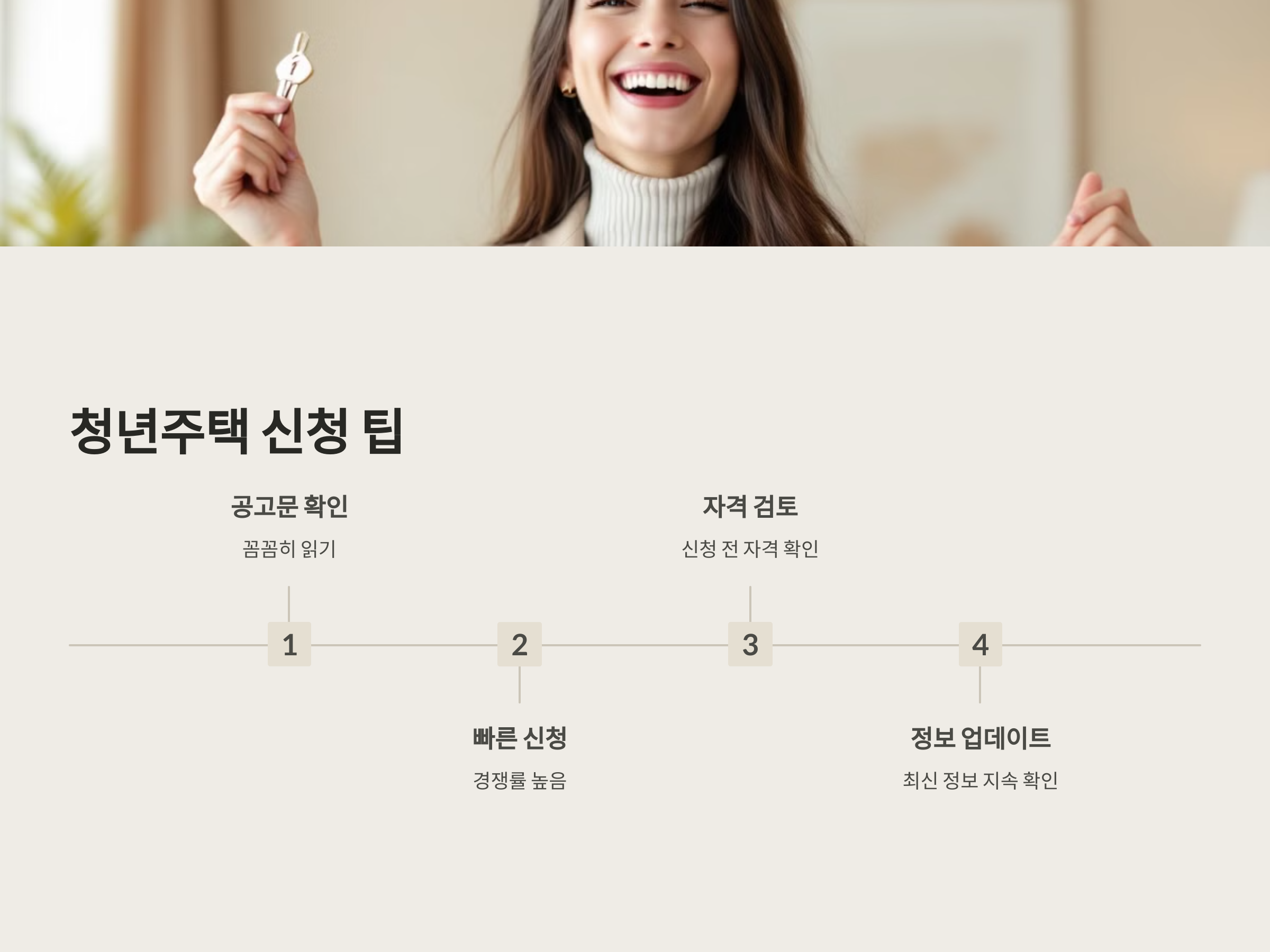 청년주택 신청 시 가장 중요한 팁은, 신청 자격과 서류를 정확하게 준비하는 것입니다. 또한, 신청 기간을 놓치지 않도록 주의하며, 공고문을 꼼꼼히 읽어보는 것이 중요합니다. 청년주택을 신청하고 나면, 일정 기간 후 결과가 발표되며, 당첨 여부에 따라 계약을 진행할 수 있습니다.