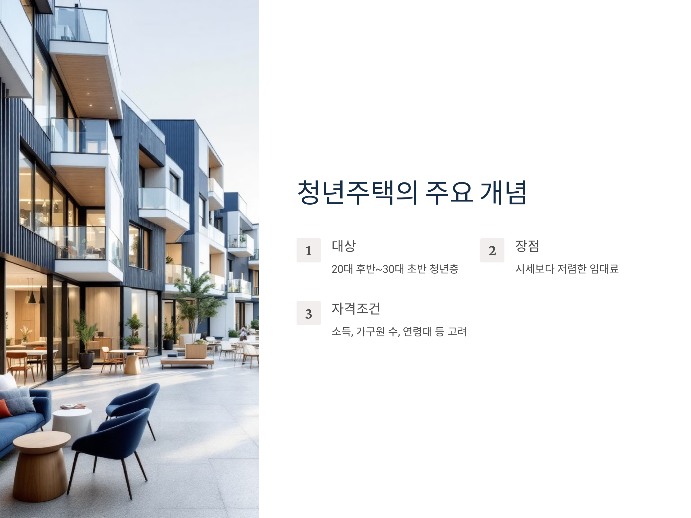 청년주택은 정부 또는 지자체가 제공하는 공공임대주택으로, 주로 20대 후반에서 30대 초반까지의 청년들을 대상으로 합니다. 청년주택의 가장 큰 장점은 임대료가 시세보다 저렴하다는 점입니다. 저렴한 임대료 덕분에 청년들이 주거비 부담을 줄이고, 경제적 자립을 할 수 있는 기회를 제공합니다. 또한, 청년주택은 다양한 형태로 제공되며, 주택 종류에 따라 입주 자격 요건이 다를 수 있습니다.