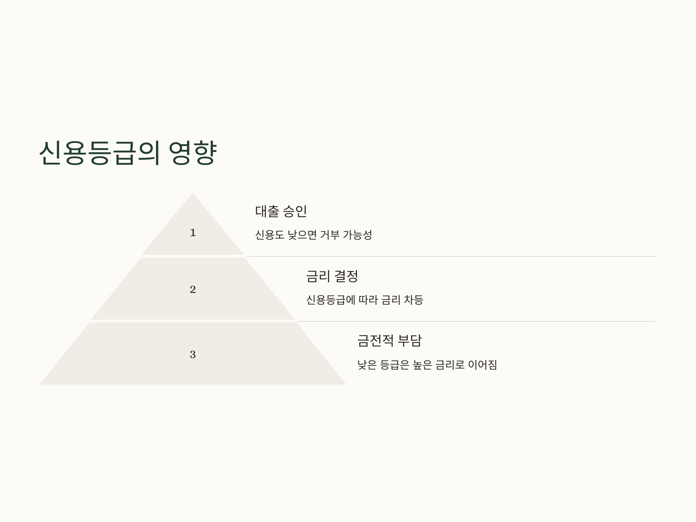 - 대출 금리: 신용등급이 높으면 대출 금리가 낮아져 장기적으로 많은 금액을 절약할 수 있습니다.