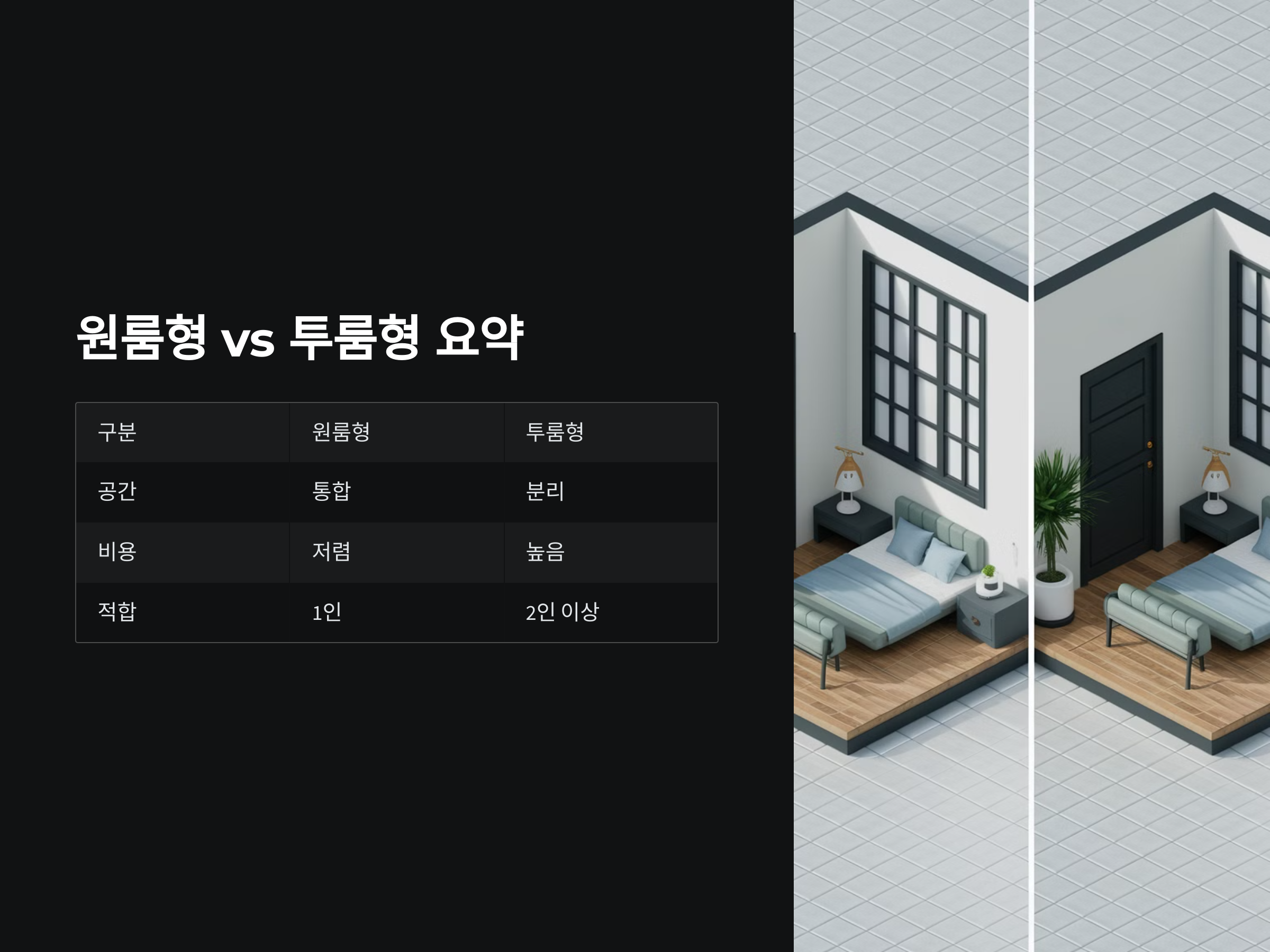 비용 비교: 원룸형 vs 투룸형