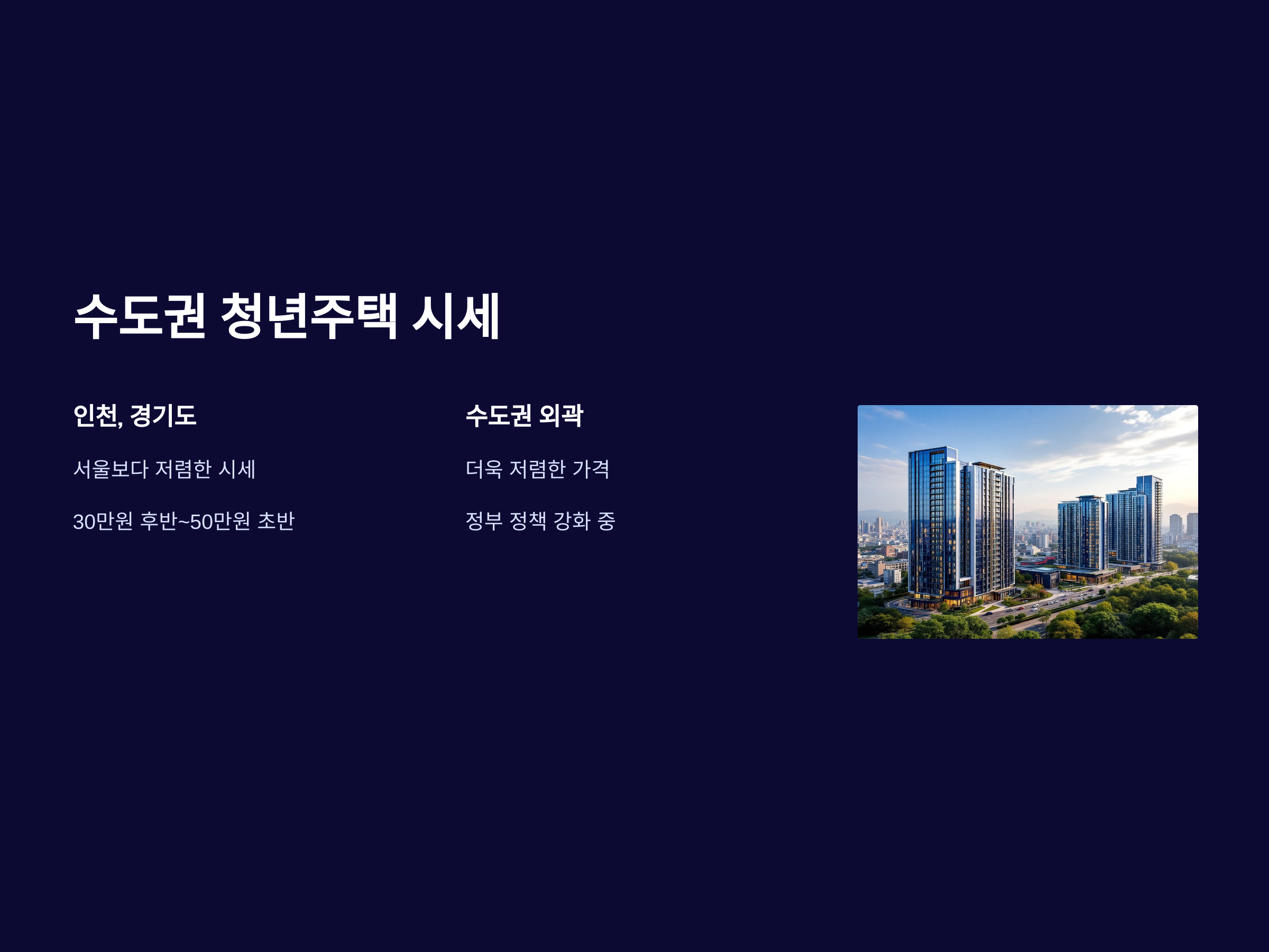 서울 외에도 수도권 지역은 청년주택 수요가 높고, 청년들이 상대적으로 저렴한 가격으로 주거지를 확보할 수 있는 좋은 기회를 제공합니다. 인천, 경기도 지역의 청년주택은 서울보다는 상대적으로 저렴한 시세를 보입니다. 예를 들어, 인천 부평구나 경기도 수원시에서는 30만 원대 후반에서 50만 원대 초반의 청년주택을 구할 수 있습니다. 수도권 외곽에 위치한 지역은 더욱 저렴한 가격을 제공하는 경우가 많아, 경제적인 부담을 줄이려는 청년들에게 매력적인 선택지가 될 수 있습니다.