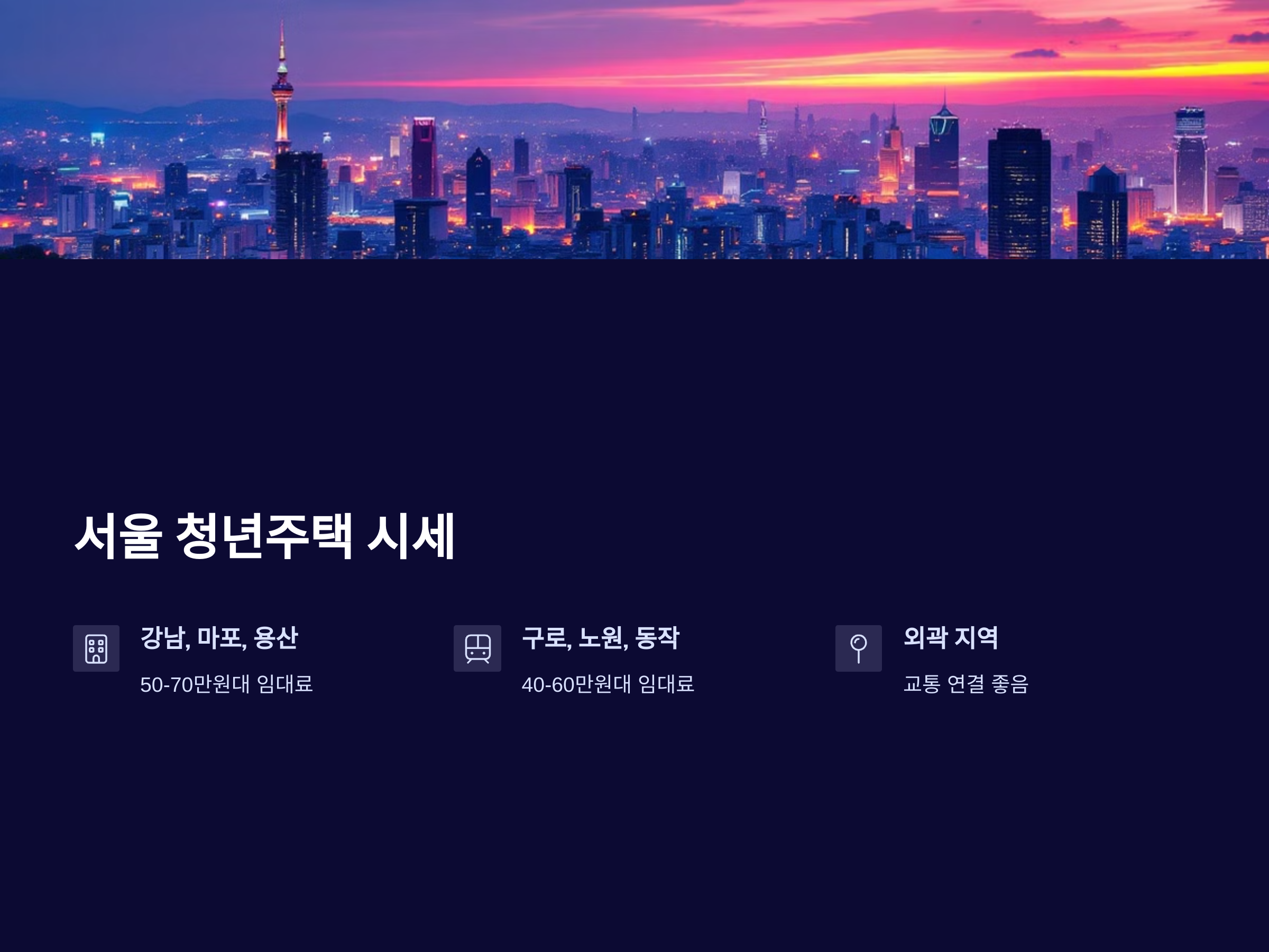 그러나 서울의 외곽 지역인 구로구, 노원구, 동작구 등은 상대적으로 시세가 낮은 편입니다. 이들 지역은 교통이 잘 연결되어 있어 서울의 중심지로의 이동이 편리하고, 시세도 서울의 중심부보다 저렴하게 책정됩니다. 예를 들어, 구로구나 노원구에서는 40만 원대에서 60만 원대의 임대료를 보이는 청년주택을 찾아볼 수 있습니다.