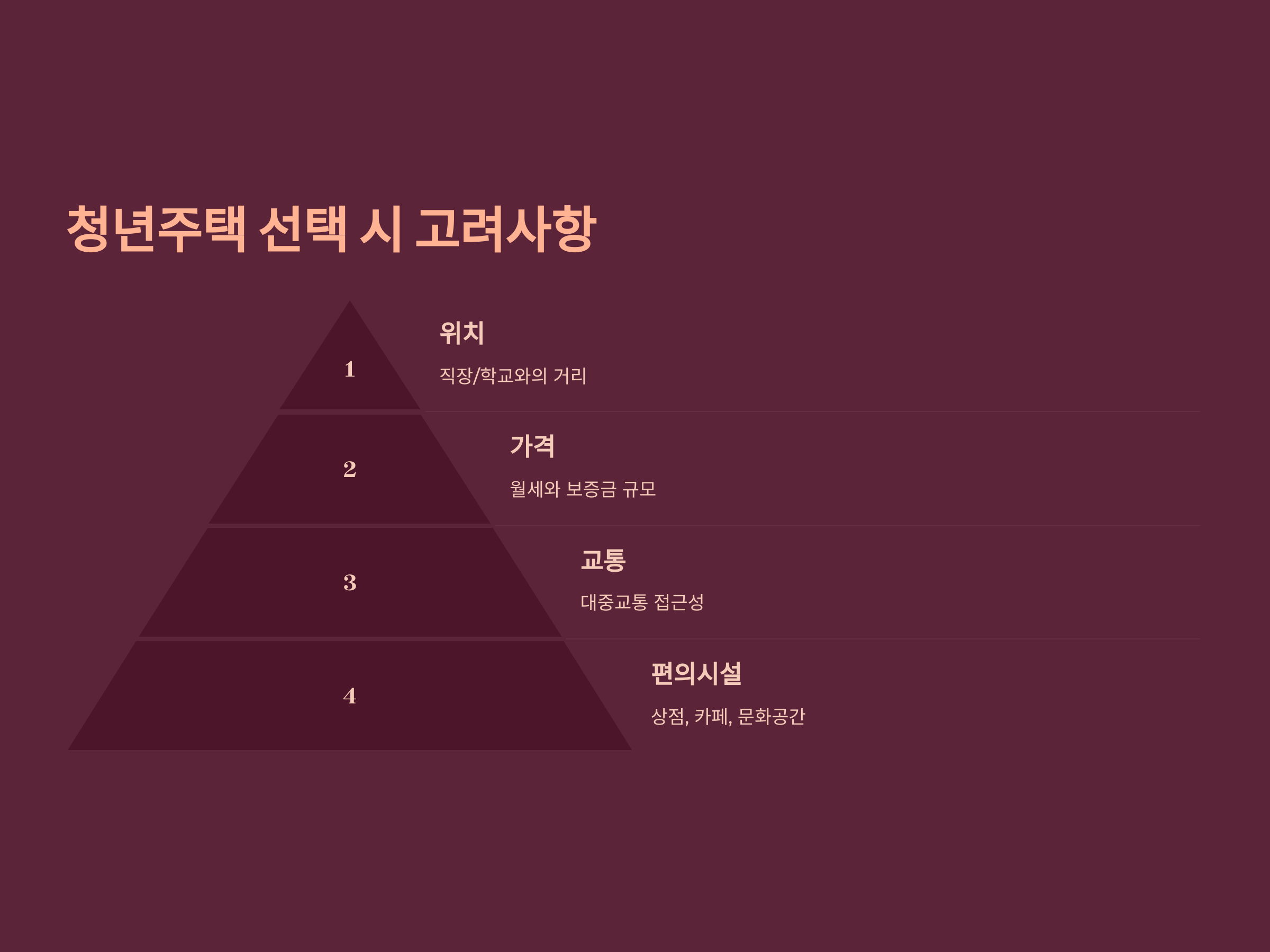청년주택을 선택할 때 가장 중요한 요소는 바로 가격과 위치입니다. 특히, 서울과 수도권 지역의 청년주택은 교통과 생활 환경이 우수하며, 많은 청년들이 선호하는 지역입니다. 하지만 가격이 비쌀 수 있기 때문에, 가격과 생활 편의성을 잘 고려한 선택이 필요합니다.