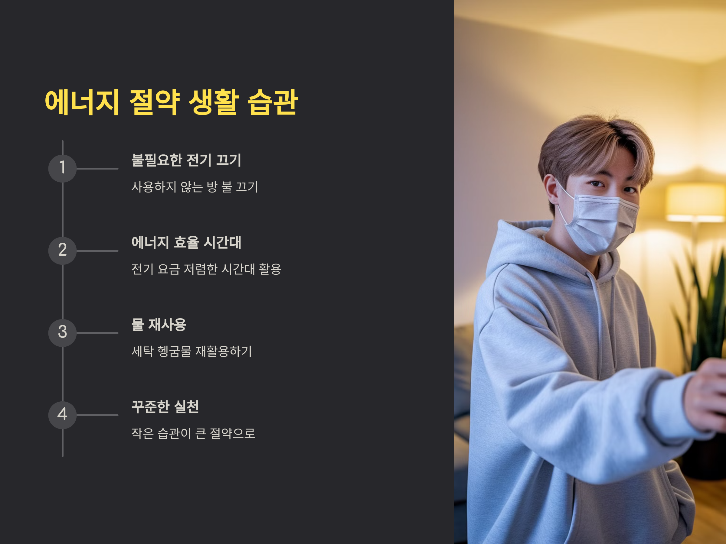 전기세를 절감하기 위해서는 작은 실천이 큰 변화를 가져올 수 있습니다. 이렇게 불필요한 전력 소비를 줄이면 매달 전기세가 눈에 띄게 감소할 것입니다. 특히 청년주택과 같이 제한된 예산 내에서 생활하는 경우, 전기세를 아끼는 것은 필수적입니다.